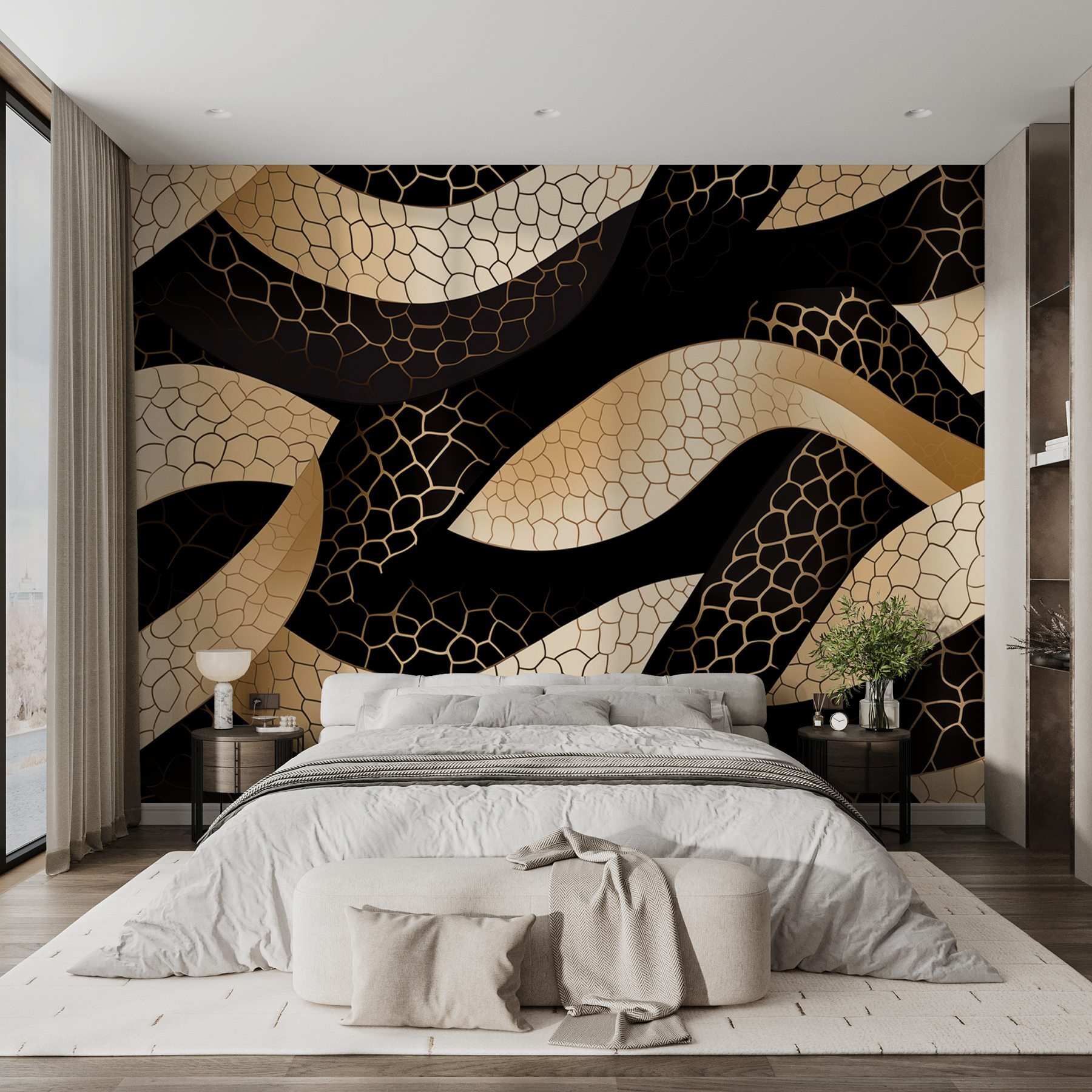 Apportez une touche d’élégance à n’importe quelle pièce avec cette peinture murale hypnotique, représentant de gracieuses vagues dansant sur un fond sombre. C’est comme si vous invitiez une œuvre d’art sur vos murs, transformant instantanément votre espace en quelque chose d’extraordinaire. Imaginez des soirées douillettes passées à admirer la façon dont la lumière joue sur ces courbes, ou la façon dont elles semblent onduler doucement lorsque vous passez devant. Vos amis ne manqueront pas de vous complimenter sur votre décoration “chic”, alors qu’au fond de vous, vous savez que c’est simplement vous qui avez du style. Parfaite pour les salons, les chambres à coucher ou même le bureau à domicile, cette peinture murale invite à la chaleur et au charme, rendant chaque coup d’œil un peu plus spécial. C’est de l’art, c’est de la décoration, c’est presque un sujet de conversation. Qui aurait cru que les murs pouvaient être aussi charmants ?