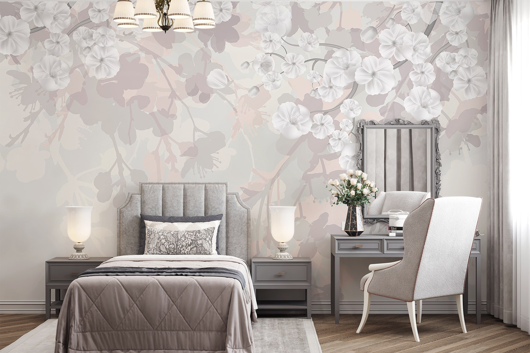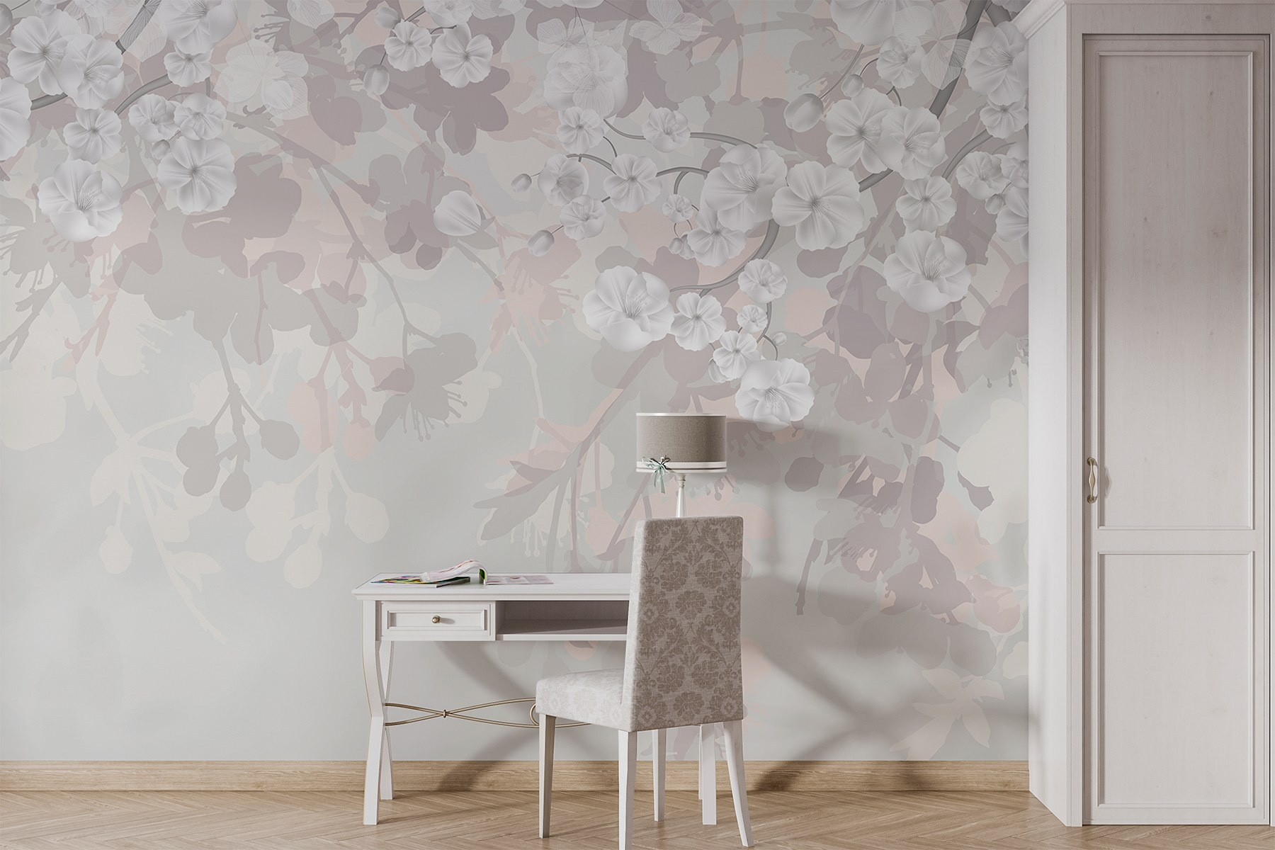 Imaginez que vous pénétrez dans un monde serein chaque fois que vous entrez dans une pièce. Cette peinture murale, avec ses fleurs blanches de rêve flottant sur un fond doux, a cette touche magique. C’est comme un doux murmure de printemps, quelle que soit la saison. Imaginez-vous en train de siroter un café, de contempler ces délicates fleurs et, soudain, le stress de la journée s’évanouit. Il ne s’agit pas d’une simple œuvre d’art murale, mais d’une invitation à respirer, à se détendre et à apprécier les petites joies de la vie. Parfait pour un coin lecture confortable ou une chambre à coucher tranquille, qui ne voudrait pas se réveiller entouré d’une telle beauté ? Elle apporte une légèreté qui rend tout un peu plus lumineux.