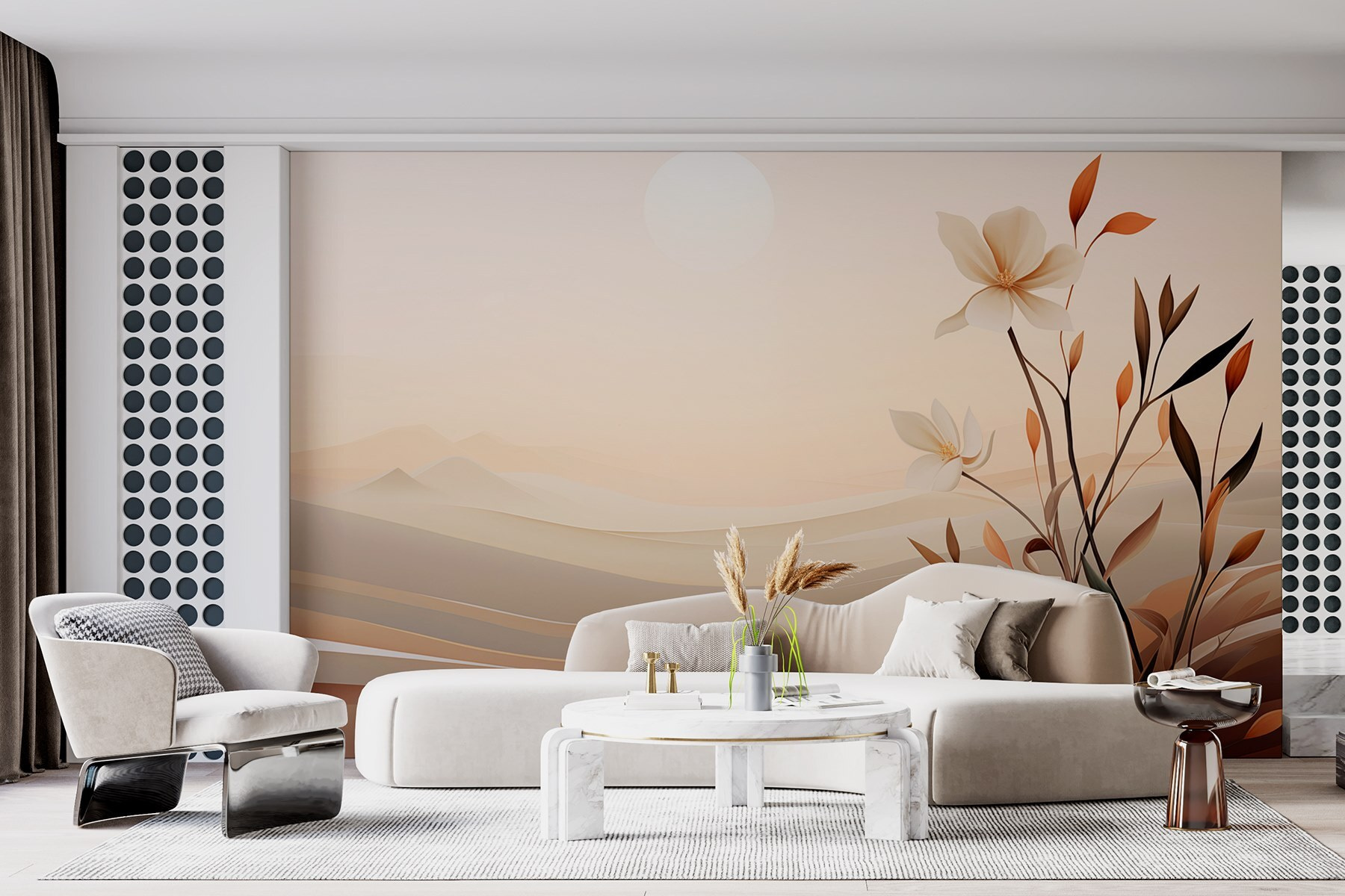 Transformez n’importe quel espace avec cette superbe peinture murale, “Peinture murale de fleurs dans un désert”. Imaginez ceci : de doux pétales de fleurs s’épanouissant au milieu de la douce vague de dunes de sable sans fin. C’est comme si la nature avait décidé d’organiser une petite fête surprise dans l’endroit le plus inattendu.