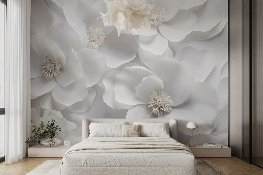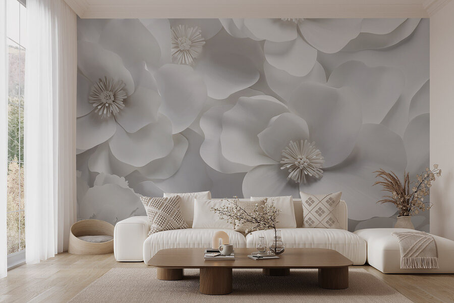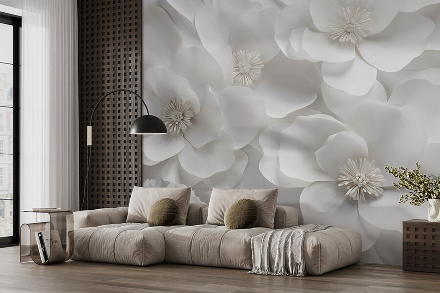 Transformez un espace terne en une retraite sereine avec le “Groupe de fleurs blanches en peinture murale”. Imaginez que vous entrez dans une pièce où des fleurs surdimensionnées s’épanouissent avec éclat, apportant une touche de nature à l’intérieur. La palette douce et subtile favorise un air de calme, parfait pour les soirées douillettes ou les brunchs animés entre amis. On a l’impression de contempler un jardin à l’aube – doux, frais et revigorant. De plus, qui ne voudrait pas être entouré de fleurs tout au long de l’année ? Parfait pour une chambre à coucher, un salon ou même un bureau chic. Dites adieu aux murs unis et bonjour à l’étreinte florale !