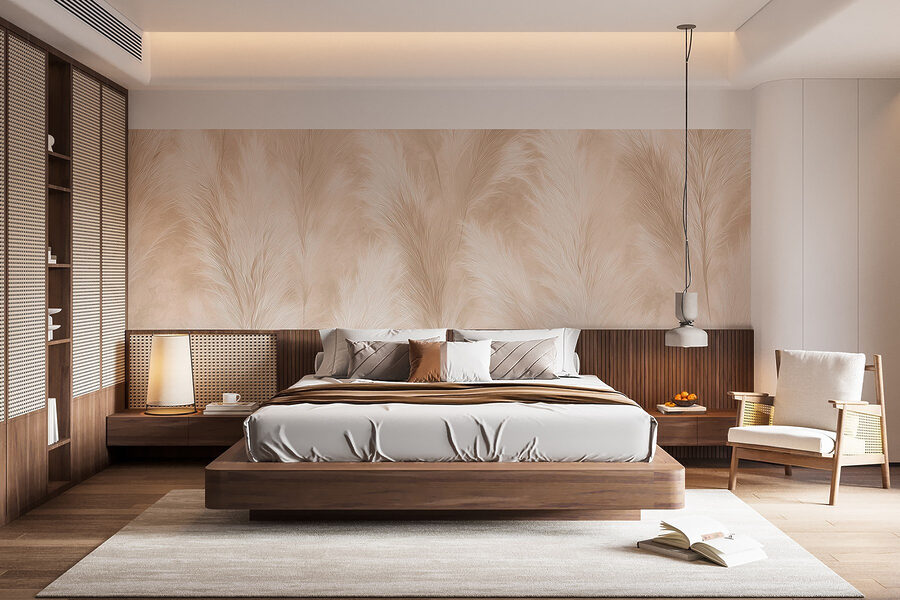 Imaginez-vous en train de vous lover dans un bon livre, entouré de ces tons doux et naturels qui apaisent instantanément l’esprit. C’est le genre de décor qui suscite les conversations – les invités se retrouveront probablement en train de toucher les murs, se perdant dans les vibrations tranquilles qui s’en dégagent. Qu’il s’agisse de votre salon ou d’un coin douillet, cette peinture murale peut transformer l’ordinaire en quelque chose d’extraordinaire. De plus, elle se marie à merveille avec la verdure. Pensez à ce mélange de textures ! Laissez cette peinture murale devenir la toile de ces petits moments de joie.