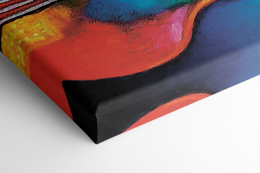 Oh, voici votre prochaine obsession : “Cercle blanc en bleu et rouge”. Imaginez ce tableau accroché dans votre salon, avec ces couleurs audacieuses et tourbillonnantes qui évoquent l’énergie et l’espièglerie. Vos amis ne pourront s’empêcher d’en parler ! Les bleus vifs, les rouges ardents et les touches de jaune, c’est comme un concert de jazz pour les yeux.