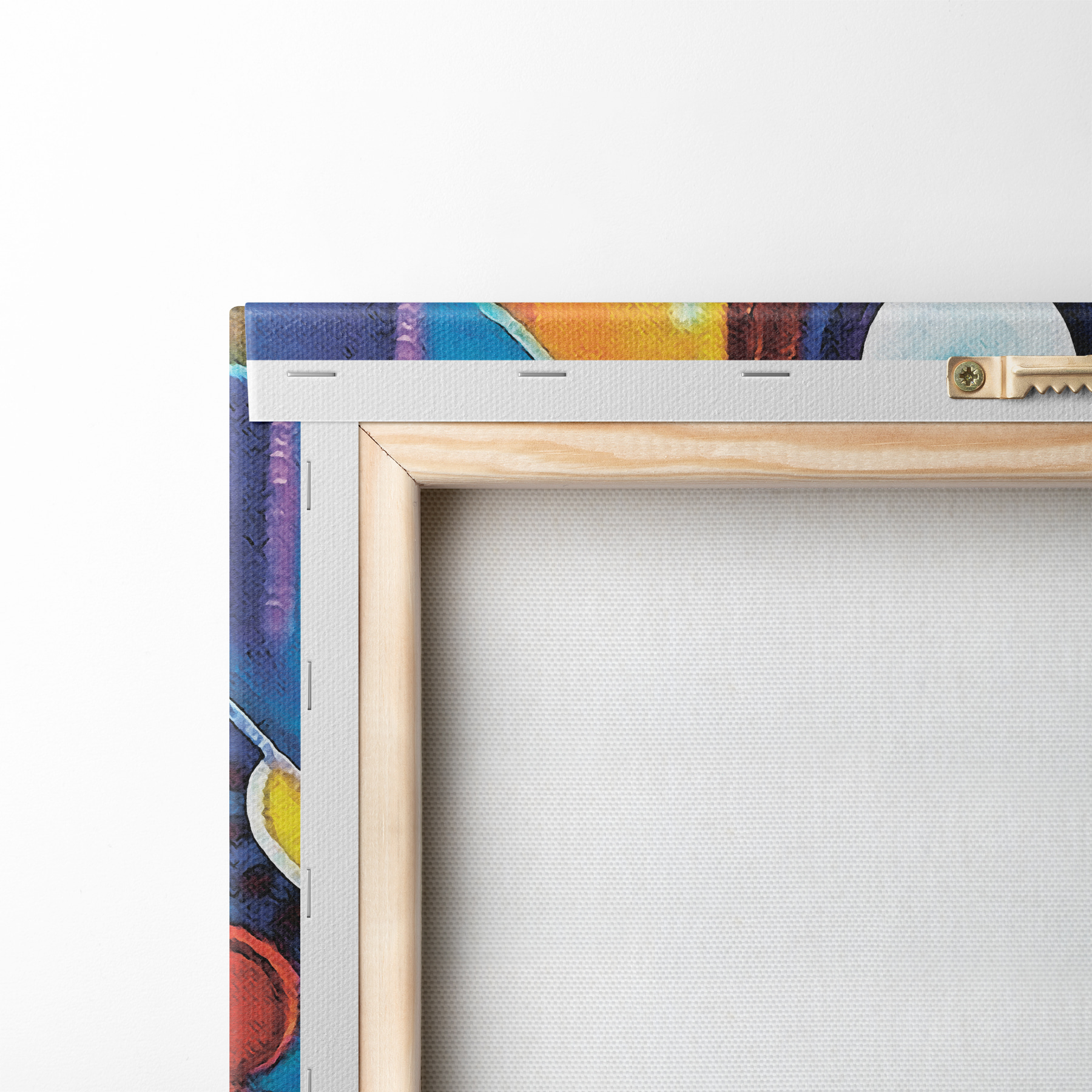 Vous vous surprendrez à rêvasser en fixant ce cercle blanc excentrique, un peu comme une pleine lune qui garderait un œil sur tout le chaos qui règne en dessous d’elle. Croyez-moi, ce n’est pas seulement de l’art, c’est une dose quotidienne de bonheur ! De plus, il s’intègre parfaitement à tout espace qui a besoin d’une touche d’audace et d’abstraction. C’est comme une dose de caféine visuelle, qui vous donne de l’énergie et vous prépare à conquérir la journée !