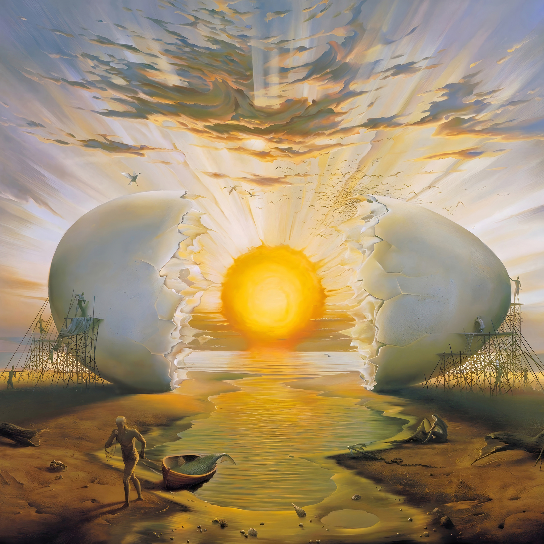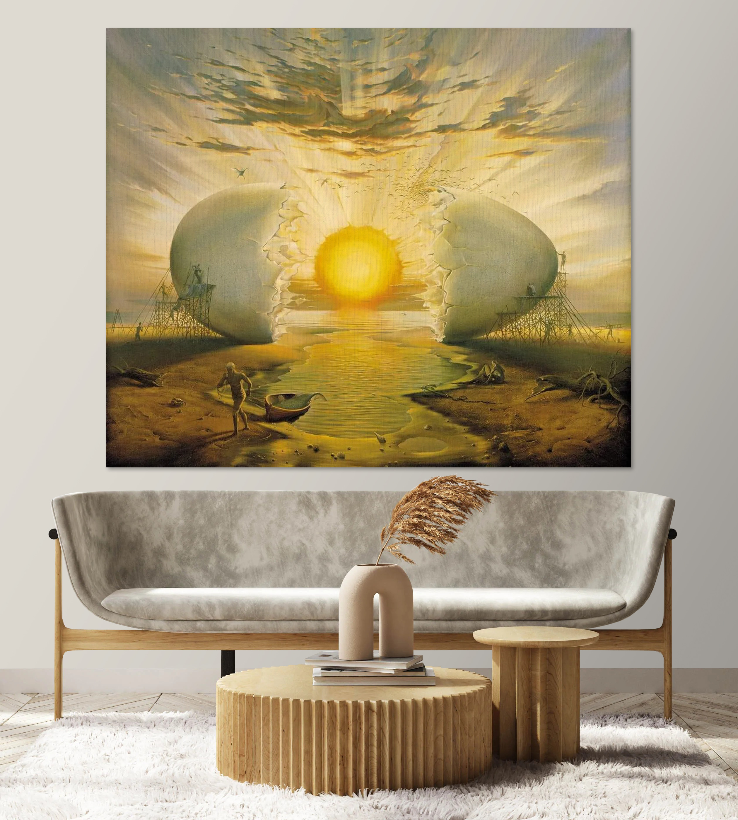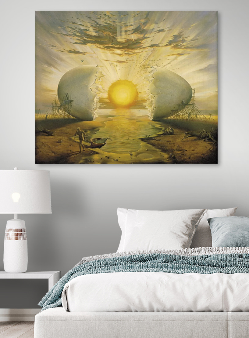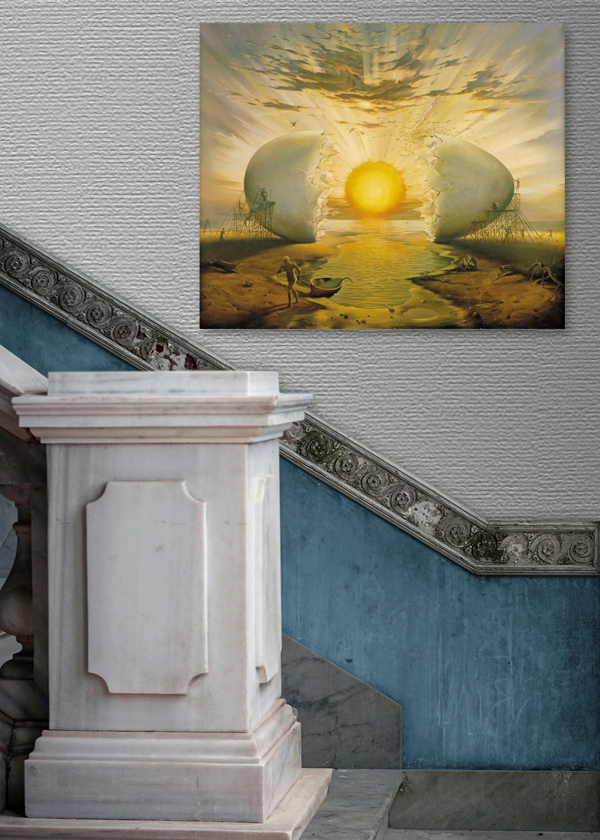Plongez dans l’univers fantaisiste de “L’homme peignant un gros œuf”. Il ne s’agit pas seulement d’une œuvre d’art, mais d’une expérience. Imaginez un coucher de soleil jaillissant d’une coquille d’œuf, comme si l’univers s’ouvrait pour laisser entrer la joie. La poussière de la plage, le doux son du clapotis de l’eau et cette scène incroyable peuvent transformer n’importe quel mur en un portail d’inspiration. Elle trouve l’équilibre entre le ludique et le profond, ce qui permet à quiconque de l’apercevoir de s’arrêter et peut-être même de rire. Parfaite pour un coin en manque de personnalité, elle est comme une amorce de conversation dont vous ne soupçonniez pas l’existence. Apportez chez vous une pièce qui capture l’imagination et l’émerveillement, en ajoutant une couche de créativité à votre espace.
