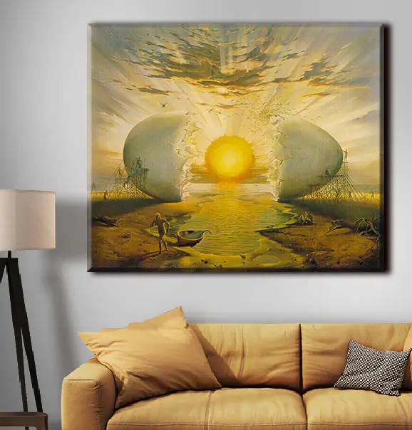 Plongez dans l’univers fantaisiste de “L’homme peignant un gros œuf”. Il ne s’agit pas seulement d’une œuvre d’art, mais d’une expérience. Imaginez un coucher de soleil jaillissant d’une coquille d’œuf, comme si l’univers s’ouvrait pour laisser entrer la joie. La poussière de la plage, le doux son du clapotis de l’eau et cette scène incroyable peuvent transformer n’importe quel mur en un portail d’inspiration. Elle trouve l’équilibre entre le ludique et le profond, ce qui permet à quiconque de l’apercevoir de s’arrêter et peut-être même de rire. Parfaite pour un coin en manque de personnalité, elle est comme une amorce de conversation dont vous ne soupçonniez pas l’existence. Apportez chez vous une pièce qui capture l’imagination et l’émerveillement, en ajoutant une couche de créativité à votre espace.