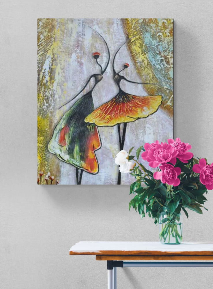 Entrez dans un monde vibrant avec cette impression sur toile accrocheuse représentant des danseurs abstraits pris dans la joie du mouvement. Imaginez ces figures colorées virevoltant gracieusement, comme si chaque regard apportait une touche d’énergie dans votre espace. Parfaite pour un salon confortable ou une entrée lumineuse, cette œuvre invite au sourire et à la rêverie. C’est comme si vous organisiez une petite fête dansante à chaque fois que quelqu’un passe devant vous. Ces teintes tourbillonnantes ? Elles ne manqueront pas de susciter des conversations. Accrochez-le, détendez-vous et laissez cette œuvre d’art vivante apporter une touche amusante et fantaisiste à n’importe quel mur.