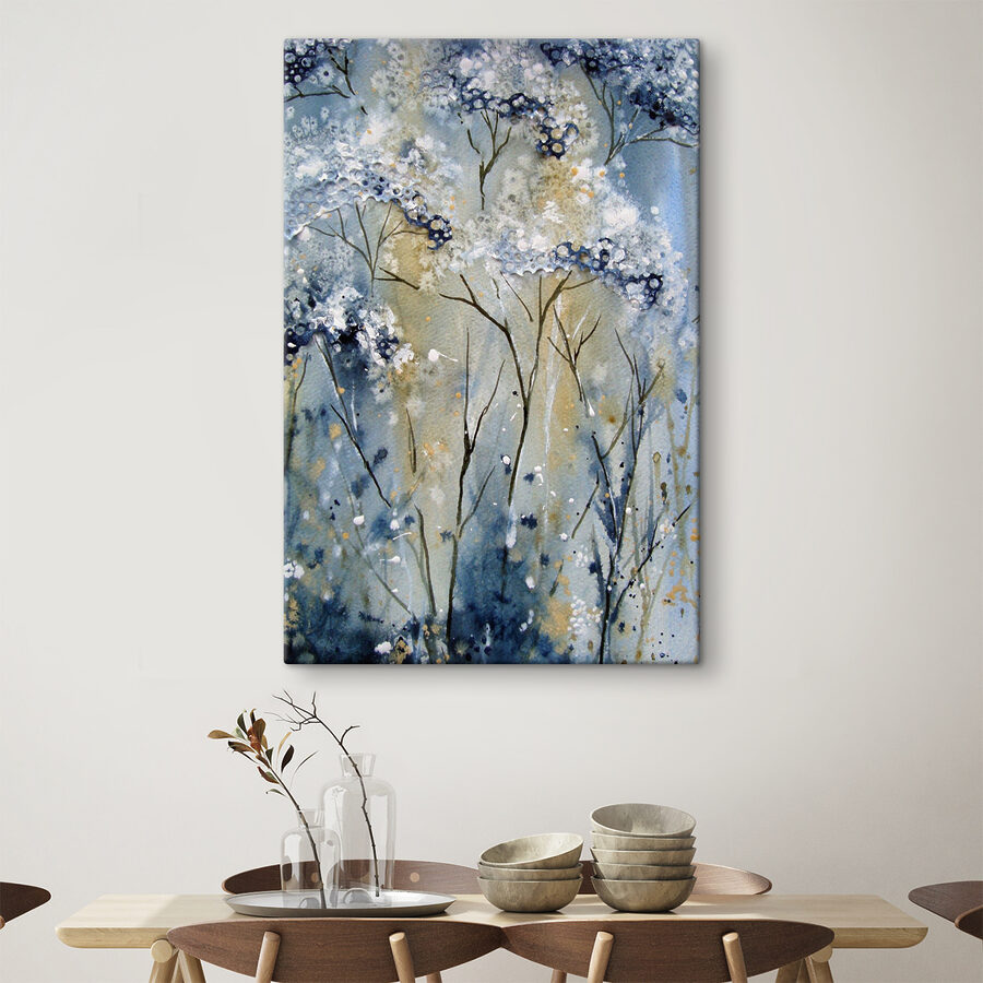 Son mélange de tons sourds avec des touches de blanc et de bleu crée une ambiance à la fois apaisante et visuellement intrigante. Placez-le dans votre salle à manger pour susciter un peu de conversation autour de la table, ou placez-le dans un coin lecture confortable où vous pourrez rêvasser sous ses douces teintes. Vos amis pourraient même le confondre avec une aquarelle originale, chaque coup de pinceau chuchotant des histoires de la nature. Parfait pour tous ceux qui souhaitent ajouter une touche de sophistication artistique sans tomber dans l’audace. Une merveille qui attire l’attention et qui allie subtilité et style – cette impression sur toile est un incontournable de la collection de tout amateur d’art.