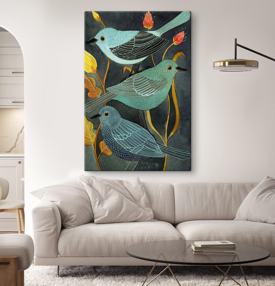 Parfait pour cet endroit dont vous ne savez que faire – peut-être au-dessus de votre table basse où les invités se réunissent et discutent. Il est à la fois excentrique et élégant, et il raconte sa propre histoire. Ces oiseaux semblent avoir leur propre personnalité, comme s’ils étaient au courant d’un petit secret. N’entendez-vous pas le doux bruissement des feuilles, un doux rappel de la beauté qui se trouve juste derrière nos fenêtres ? Ajoute une ambiance douillette et sereine à votre maison.