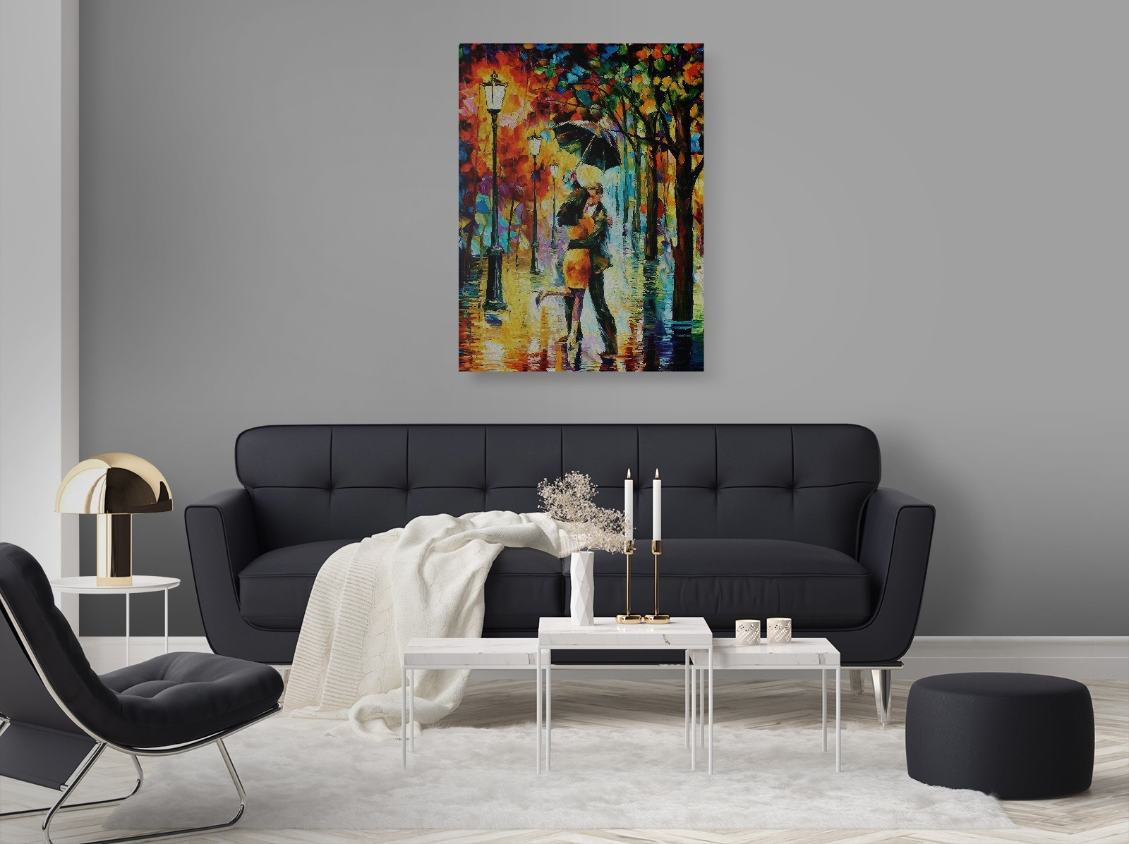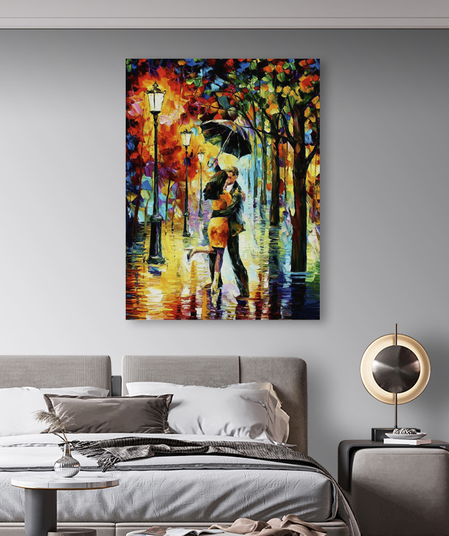 Imaginez : une soirée pluvieuse et sereine où un couple s’embrasse tendrement sous un parapluie. Affichez cela sur votre mur ! Cette vibrante impression sur toile capture ce moment magique avec une explosion de couleurs, comme un festival d’amour sous la pluie. Elle est parfaite pour tous ceux qui souhaitent ajouter une touche de romantisme à leur espace. C’est coloré, c’est audacieux et cela fera sourire tous les passants qui imagineront une douce histoire d’amour.
