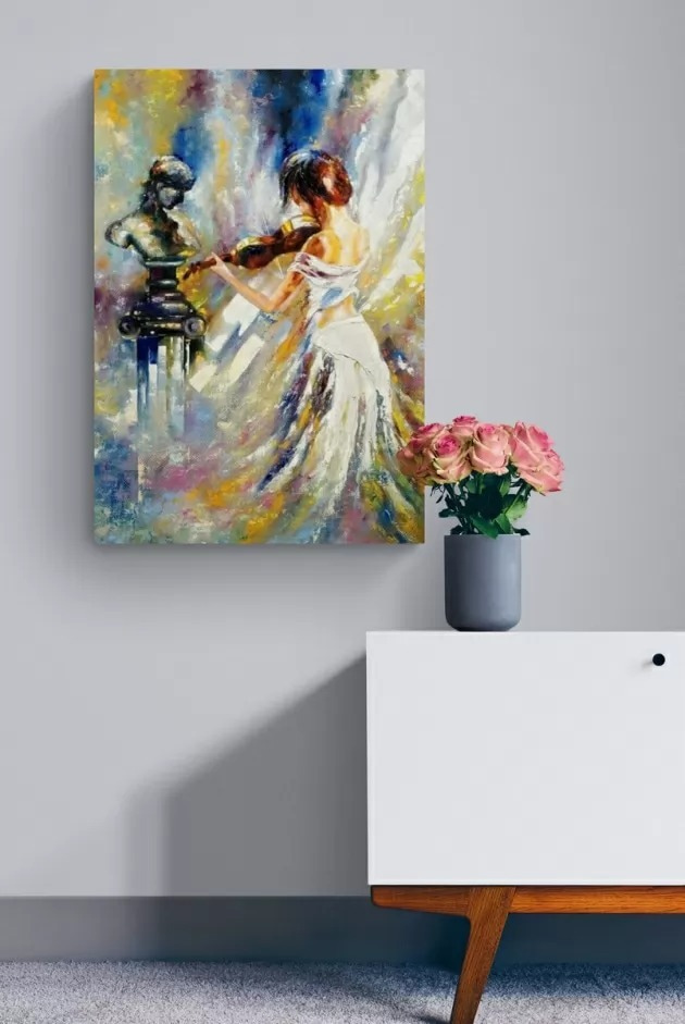 Cette impression sur toile capture un moment enchanteur : une femme avec son violon, perdue dans un monde de musique et de couleurs. Vous pouvez presque entendre les mélodies danser dans l’air, n’est-ce pas ? Les teintes tourbillonnantes créent une toile de fond onirique qui semble vivante, comme si le tableau respirait avec chaque note qu’elle joue. Imaginez cette œuvre accrochée dans un coin confortable de votre maison, invitant à des conversations chaleureuses et à des rêveries. Ce n’est pas seulement de l’art, c’est aussi une source d’inspiration et une touche d’élégance. Parfait pour ceux qui apprécient l’harmonie de la créativité et de la beauté !