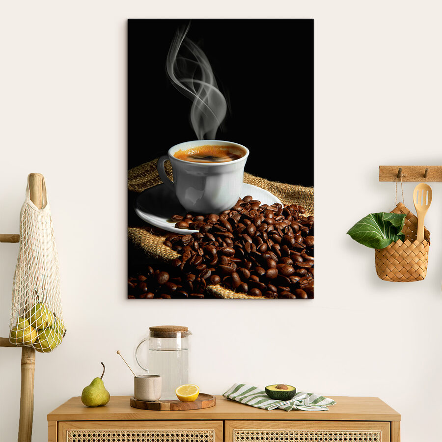 Imaginez un dimanche matin paresseux, l’odeur du café fraîchement préparé vous enveloppe comme une chaude étreinte. L’impression sur toile “Tasse de café et grains de café” apporte cette sensation sur votre mur. Sérieusement, regardez cette vapeur ! Vous pouvez presque entendre le doux bourdonnement d’un café en arrière-plan. Parfait pour tout amateur de café – c’est comme une petite tranche de votre rituel matinal préféré capturé pour toujours.