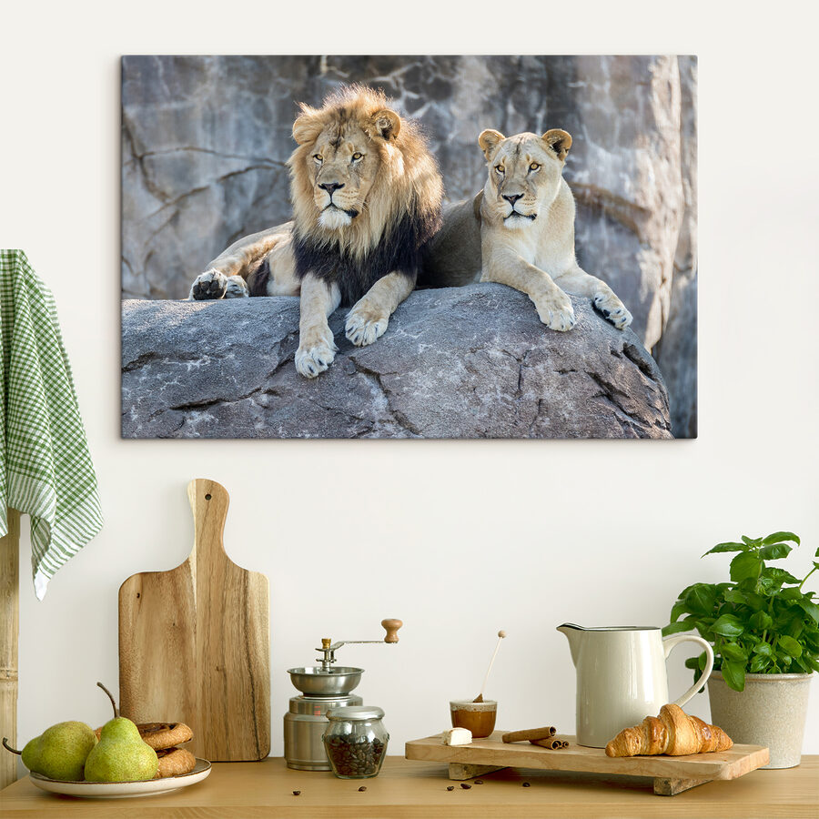 Ajoutez une touche de nature sauvage à votre chambre avec cette superbe impression sur toile d’un couple de lions se prélassant sur une corniche rocheuse. Sérieusement, ne ressemblent-ils pas à la royauté de la jungle ? L’impression est majestueuse mais décontractée, ce qui donne à chaque espace un air d’aventure. Imaginez que vous rentrez chez vous après une longue journée, que vous voyez cette image sur votre mur et que vous ressentez une énergie à la fois calme et puissante. Parfait pour tous ceux qui aiment les animaux et les décors uniques. De plus, il se situe dans la zone idéale pour être dramatique sans en faire trop.