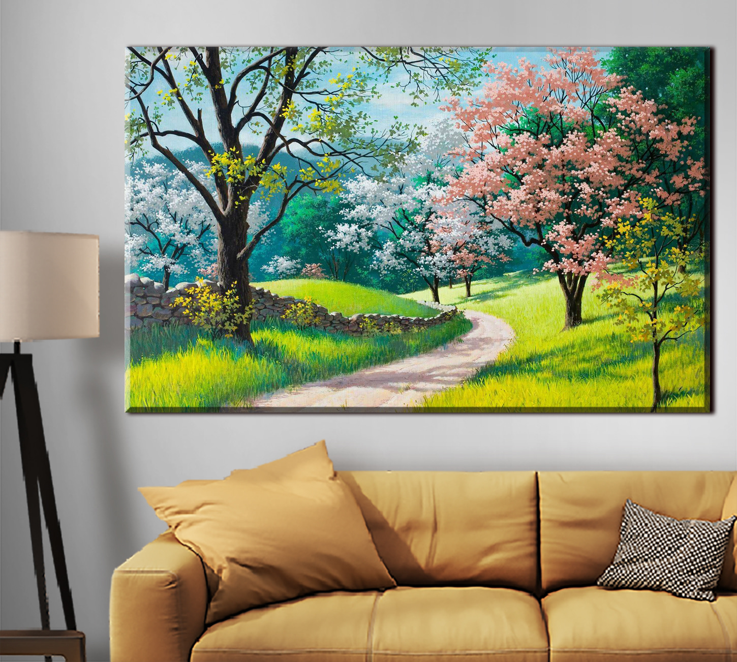 Imaginez que vous entriez dans votre chambre et que vous soyez accueilli par cette impression sur toile luxuriante et rêveuse – des arbres bourdonnant de fleurs roses et blanches. C’est comme si vous entriez dans un livre de contes de fées dans votre propre maison. Il y a quelque chose de presque magique, comme si l’air était rempli de l’odeur du printemps et du chant des oiseaux, même si nous sommes en plein hiver. Le chemin sinueux vous invite à une promenade tranquille, peut-être à vous perdre dans des pensées de journées ensoleillées et de brises chaudes. C’est une échappée belle, parfaite pour tous ceux qui aiment une touche de nature et de fantaisie dans leur décoration. Transformez n’importe quel mur terne en une scène d’extérieur vibrante ; c’est un véritable stimulant pour le bonheur.