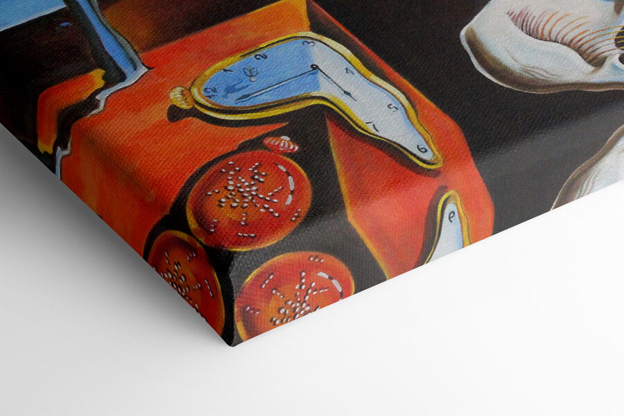 Plongez dans un paysage de rêve avec l’œuvre enchanteresse “Melting Clocks in Surreal Landscape” (Horloges en fusion dans un paysage surréaliste). Cette œuvre d’art sur toile capture la danse fantaisiste du temps, où les horloges se plient et se tordent dans un décor vivant et surréaliste. Imaginez que vous l’accrochiez dans votre salon : quel sujet de conversation ! C’est comme si vous aviez une tranche de Dali sur votre mur, vous entraînant dans un monde où la logique est reléguée au second plan. Vos amis s’amuseront peut-être de voir qu’une horloge déformée peut susciter de profonds débats sur le temps et la réalité. Laissez cette œuvre d’art stimuler votre imagination et faites de chaque coup d’œil une petite aventure. Parfait pour ceux qui recherchent l’insolite !