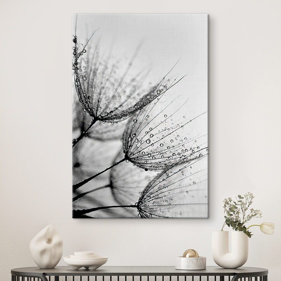 Jetez un coup d’œil à cette élégante impression sur toile intitulée “Graines de pissenlit couvertes de rosée”. C’est comme un moment poétique figé dans le temps. Imaginez cette image mystique sur votre mur : ces délicates graines de pissenlit embrassées par la rosée du matin, chaque gouttelette captant la lumière d’une manière tout simplement… magique. Cette image fait partie de nos collections d’art sur toile noir et blanc et populaire, ce qui la rend à la fois élégante et intemporelle.