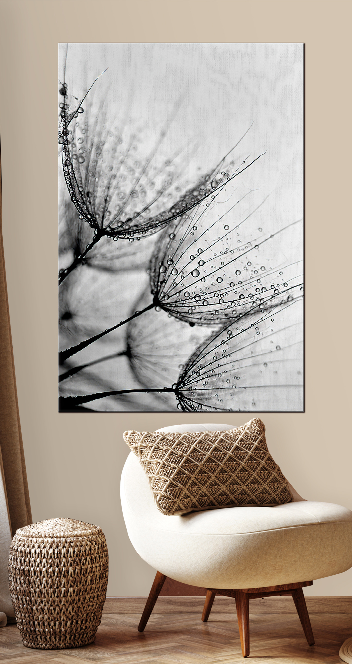 Jetez un coup d’œil à cette élégante impression sur toile intitulée “Graines de pissenlit couvertes de rosée”. C’est comme un moment poétique figé dans le temps. Imaginez cette image mystique sur votre mur : ces délicates graines de pissenlit embrassées par la rosée du matin, chaque gouttelette captant la lumière d’une manière tout simplement… magique. Cette image fait partie de nos collections d’art sur toile noir et blanc et populaire, ce qui la rend à la fois élégante et intemporelle.