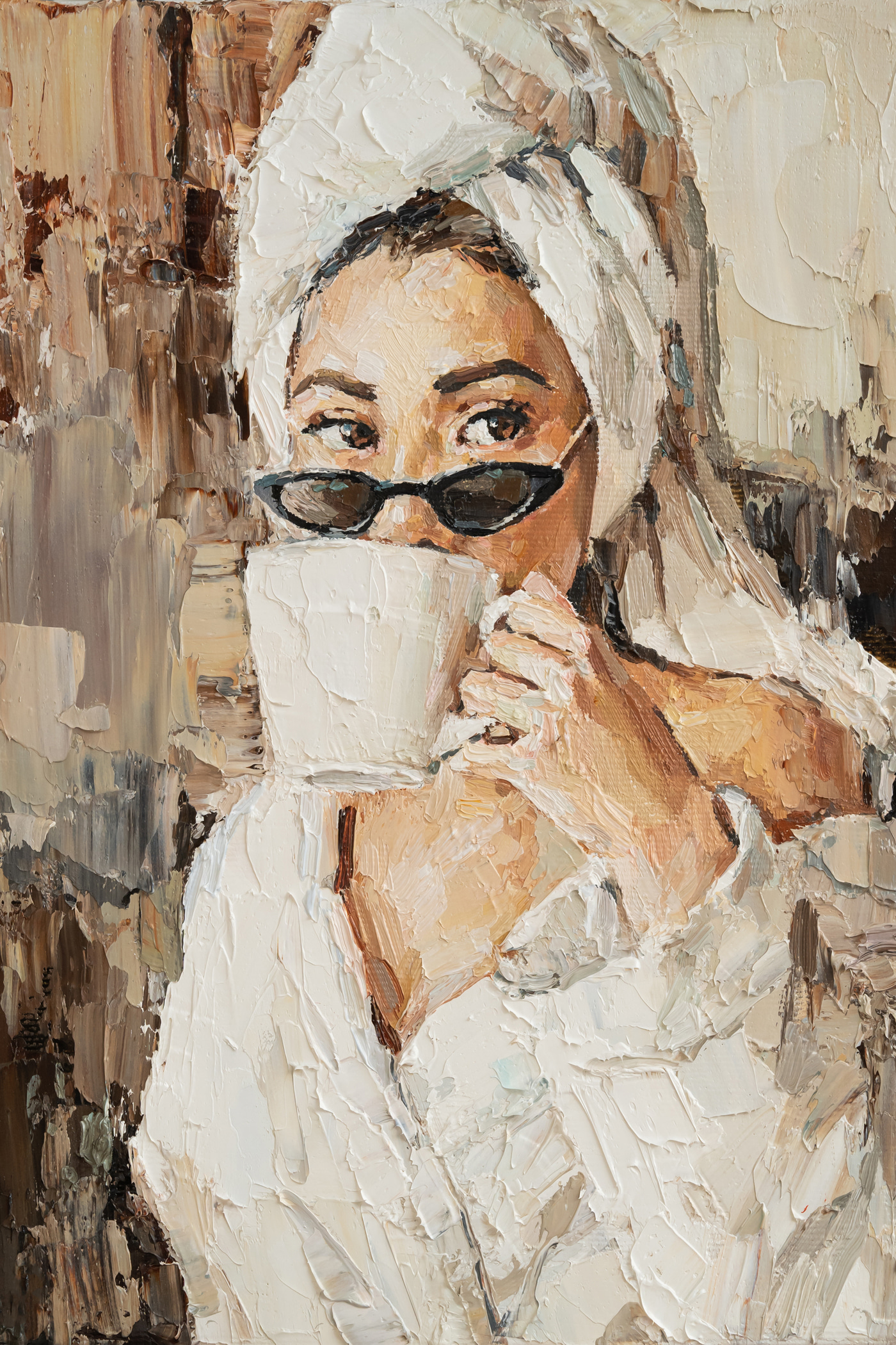 Imaginez ceci : un coin confortable dans votre maison, peut-être la cuisine ou ce coin près de la fenêtre. Imaginez maintenant que vous y accrochiez cette impression sur toile représentant une femme en train de savourer sa tasse de bonheur. Avec une serviette sur la tête et des lunettes qui crient “Je me suis réveillée comme ça”, elle a le chic sans effort. Les couleurs chaudes se marient bien, évoquant un sentiment de calme et vous invitant à prendre une pause. Parfaite pour un coin café ou un espace ayant besoin d’une touche d’élégance et d’amusement, cette pièce évoque ces moments de tranquillité que nous chérissons tous. Qu’il s’agisse de café ou de thé, cette œuvre d’art encourage à faire une petite pause, ce qui en fait un compagnon agréable dans la vie de tous les jours.