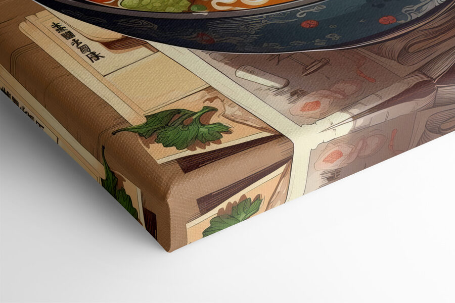 Que vous soyez amateur de cuisine, d’esthétique japonaise ou simplement d’art unique et accrocheur, cette toile est un choix fantastique. C’est comme si vous aviez un délicieux repas réconfortant sur votre mur, les calories en moins !