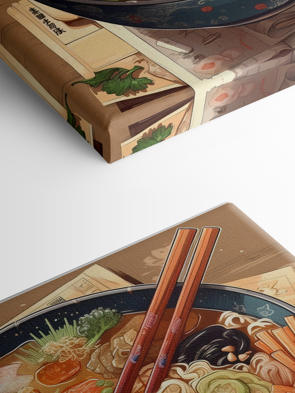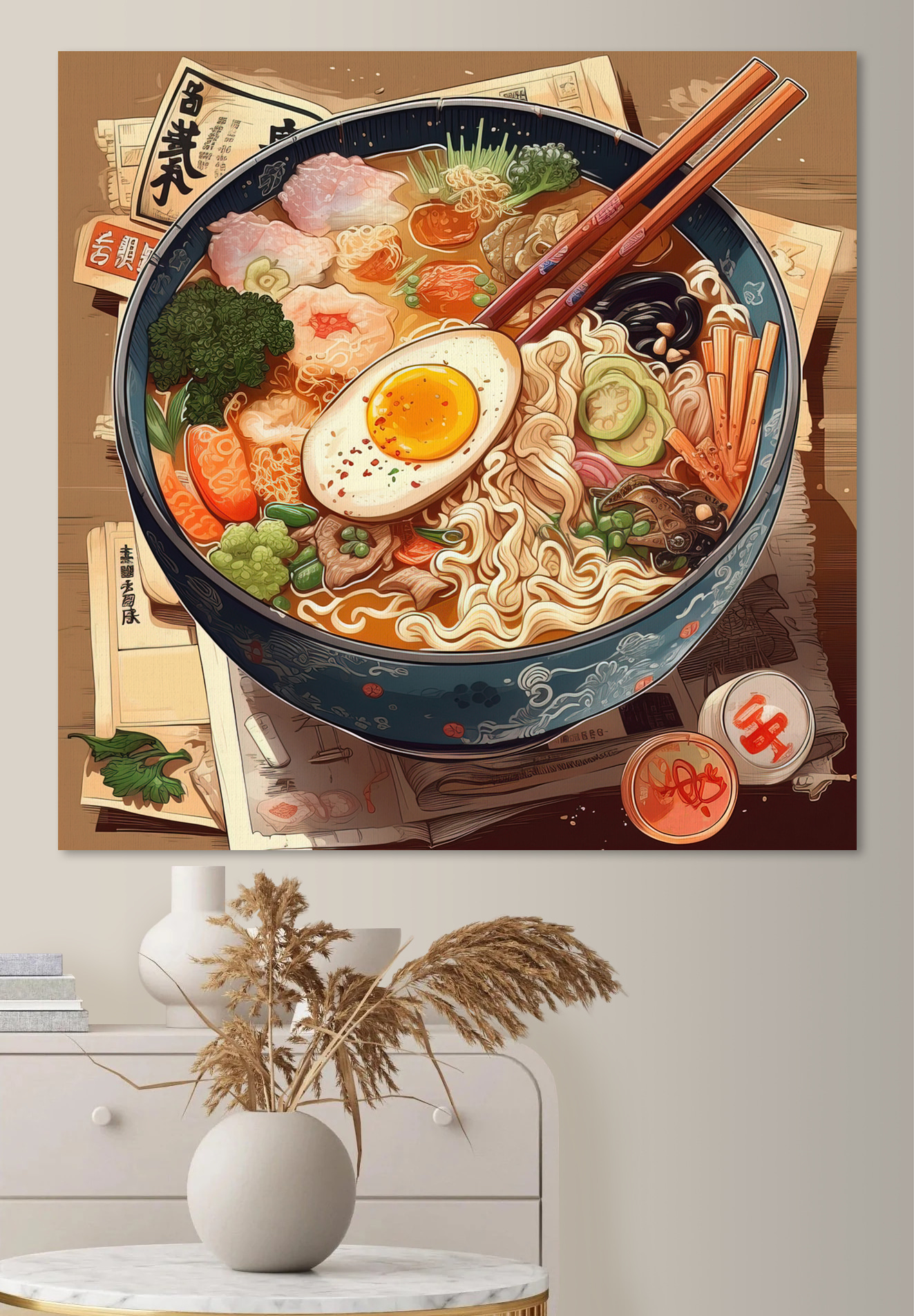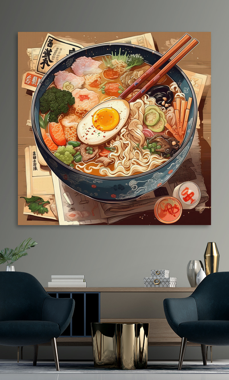 Que vous soyez amateur de cuisine, d’esthétique japonaise ou simplement d’art unique et accrocheur, cette toile est un choix fantastique. C’est comme si vous aviez un délicieux repas réconfortant sur votre mur, les calories en moins !