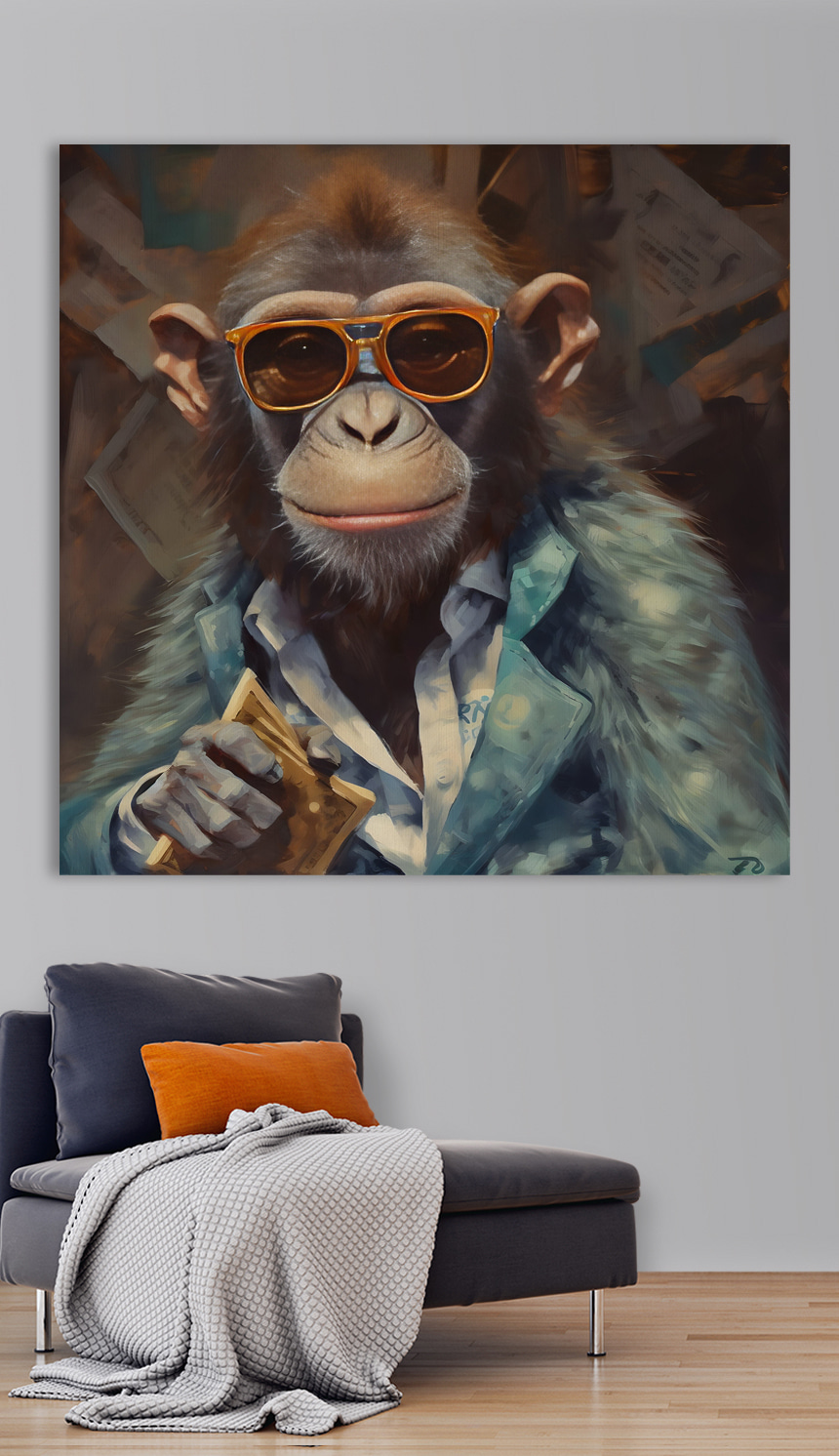 Illuminez n’importe quelle pièce avec cette impression sur toile originale représentant un chimpanzé portant d’élégantes lunettes de soleil et tenant nonchalamment une carte. Imaginez que vous passiez par là et que vous aperceviez cette frimousse insolente – vous serez immédiatement de bonne humeur ! C’est comme si vous aviez un petit ami toujours prêt à vous faire sourire. Parfaite pour un bureau à domicile ou un espace de vie amusant, cette pièce sert non seulement de décor mais aussi d’amorce de conversation. Associez-le à des coussins douillets et à quelques livres, et vous obtiendrez une ambiance accueillante, à la fois détendue et ludique. Qui ne voudrait pas avoir ce charmant personnage dans les parages ?