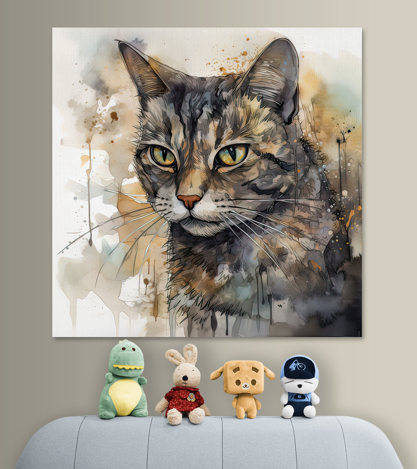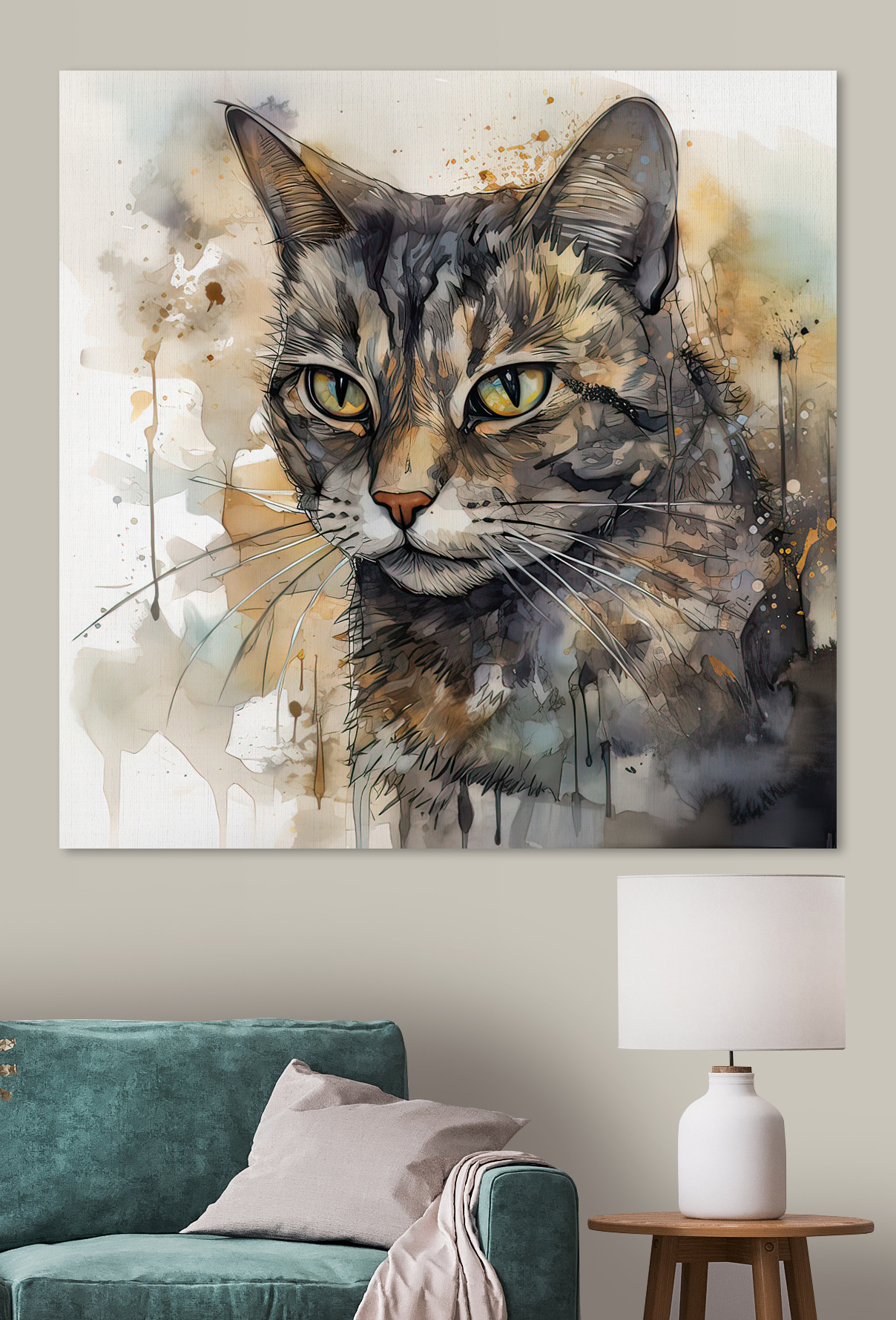 Vous avez toujours pensé que votre salon avait besoin d’un peu plus de personnalité ? Voici cette superbe impression sur toile – pensez-y comme un sujet de conversation qui ne mange pas tous vos snacks. L’œuvre “Tableaux s32299” capture le regard féroce mais quelque peu distant de ce chat dans des éclaboussures d’aquarelle vibrantes. Parfait pour les passionnés d’animaux comme pour les amateurs d’art, il dégage un charme et une touche de mystère – ces yeux, n’est-ce pas ?