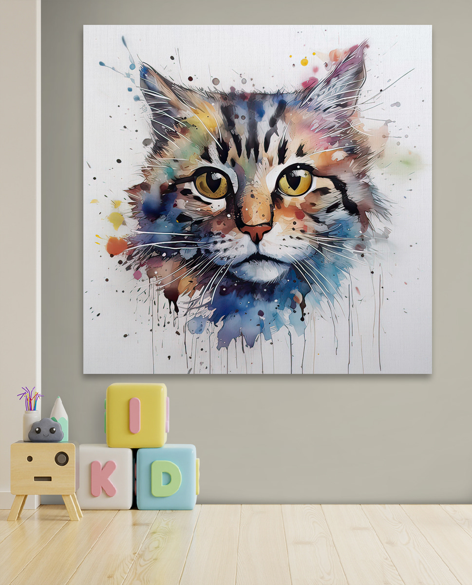 Illuminez n’importe quel espace avec cette superbe peinture sur toile représentant un chat. C’est comme si votre propre petite boule de poils vous regardait, pleine de personnalité et de charme. Les éclats de couleur ludiques invitent au sourire et stimulent les conversations, ce qui est parfait pour un coin douillet ou une salle de séjour animée. Imaginez-vous en train de vous lover dans votre canapé, en sirotant votre boisson préférée, pendant que ce félin à fourrure captive la pièce. Ce n’est pas seulement de l’art, c’est une dose quotidienne de joie. Ajoutez une touche de fantaisie et laissez ce chat séduire votre cœur et votre maison, car qui ne voudrait pas d’un compagnon artistique et plein de vie ?