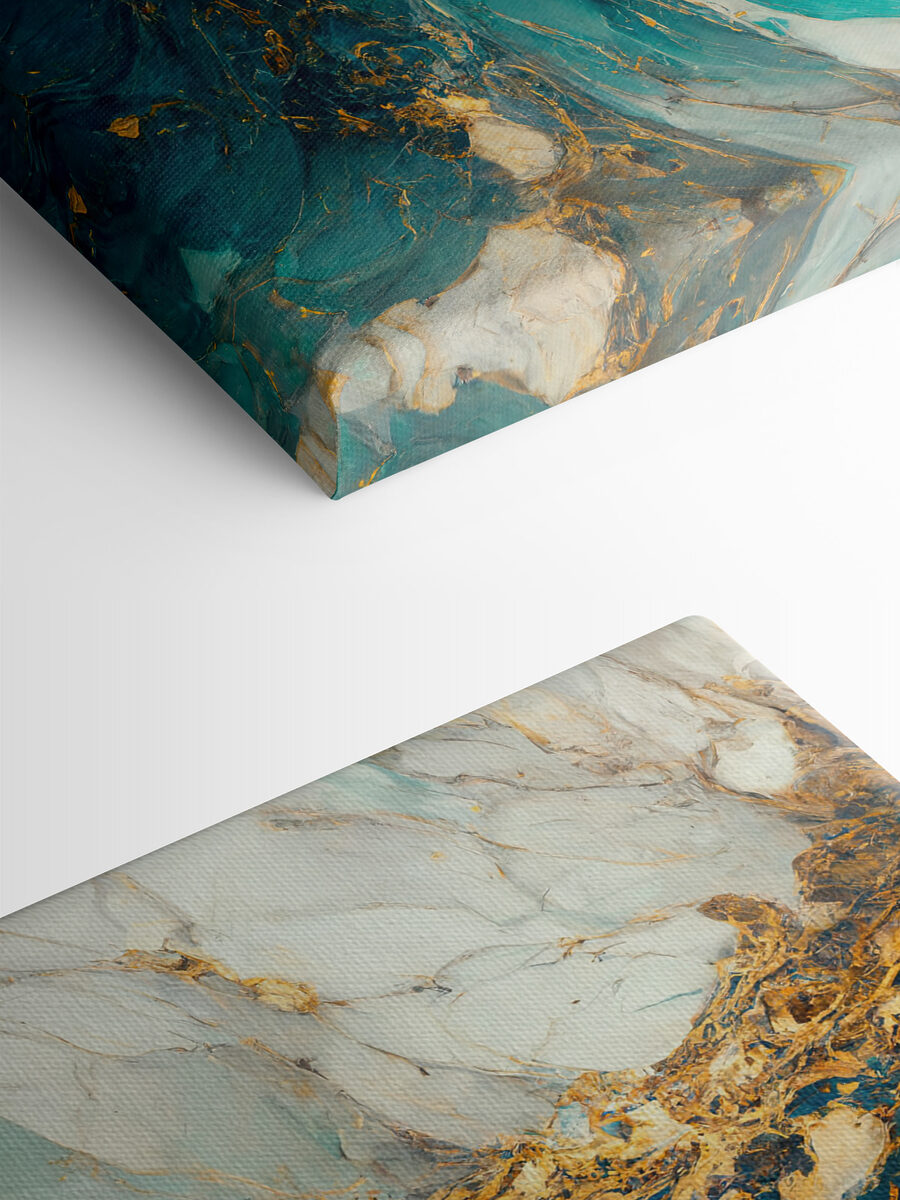 L’impression sur toile “Turquoise Swirls with Amber Veins” est comme un morceau de l’âme de l’océan accroché à votre mur. Imaginez une mer agitée figée dans le temps, avec des vagues d’un turquoise éclatant tourbillonnant et des veines d’ambre qui la traversent – c’est une touche du chaos de la nature magnifiquement capturée. Parfait pour un loft ou pour ajouter une touche artistique à n’importe quelle pièce. Cette pièce possède une énergie à la fois apaisante et intrigante ; elle demande discrètement de l’attention. Les invités pourraient faire une double prise, en réfléchissant à ses profondeurs. Elle suscitera des conversations, des rêveries et inspirera peut-être même un poème ou deux !