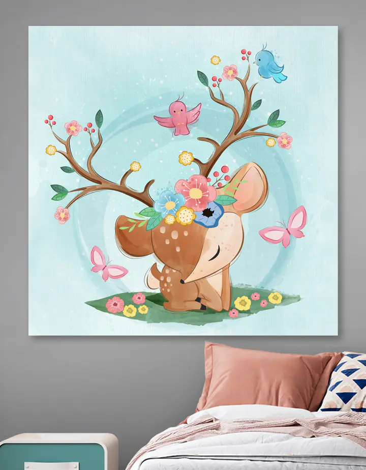 Y a-t-il quelque chose de plus réconfortant qu’une touche de fantaisie et de couleur dans une chambre d’enfant ? Jetez un coup d’œil à cette charmante impression sur toile, avec un charmant dessin animé d’un oiseau rose qui va vous émoustiller. Parfaite pour susciter un peu de joie et d’imagination, elle fait partie de la collection “Canvas Art for Kids”. Imaginez une scène sereine avec un gentil cerf, des fleurs colorées et des oiseaux roses qui virevoltent. Accrocher ce tableau, c’est comme ouvrir une fenêtre sur une forêt magique et rêveuse. C’est le genre d’objet qui rend les histoires du soir encore plus enchanteresses et les sourires du matin un peu plus larges. Un doux rappel pour chérir les petits moments de douceur. Vos enfants l’adoreront et, soyons honnêtes, vous vous surprendrez peut-être à sourire à chaque fois que vous le verrez.
