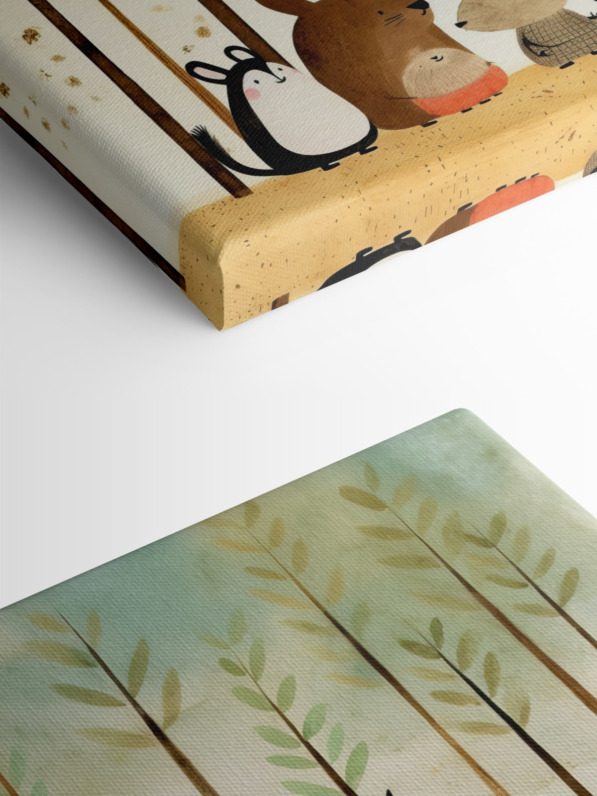 Jetez un coup d’œil à cette ravissante impression sur toile intitulée “Groupe d’animaux en ligne”. Parfaite pour ajouter une touche de fantaisie à une chambre d’enfant, elle présente un charmant défilé d’adorables créatures de la forêt. Imaginez votre enfant se réveiller tous les matins avec ces joyeux compagnons – c’est comme s’il avait une mini forêt dans sa chambre ! Les couleurs douces et les expressions adorables donnent l’impression d’une scène tirée d’un livre de contes bien-aimé. Et qui n’aimerait pas ce renard parfaitement excentrique ou ce lapin rond et joyeux ? Cet imprimé ressemble à un câlin chaleureux de la nature, ce qui en fait une pièce adorable, que ce soit pour une chambre d’enfant, une salle de jeux ou simplement pour ajouter une touche de gaieté à votre espace de vie. Alors, pourquoi ne pas inviter cette adorable bande dans votre maison ? Ils ne manqueront pas de faire naître des sourires et d’éveiller l’imagination.
