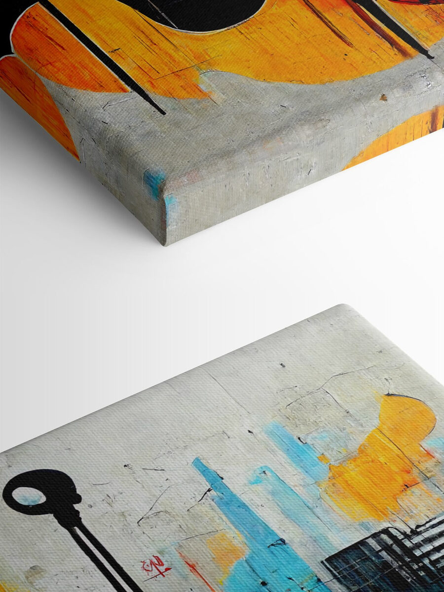 Le cercle noir, avec son trou mystérieux, vous attire. Que se passe-t-il ici ? Qui sait, mais c’est amusant d’y réfléchir. Les oranges et les bleus éclatants dansent autour du cercle, comme un groupe de jazz lors d’une session d’improvisation – tout est synchronisé mais merveilleusement imprévisible. Les invités seront curieux, peut-être même un peu hypnotisés. Parfait pour tout espace qui a besoin d’un peu de jazz sans les trompettes. Si l’art pouvait faire un clin d’œil, cette impression sur toile le ferait.