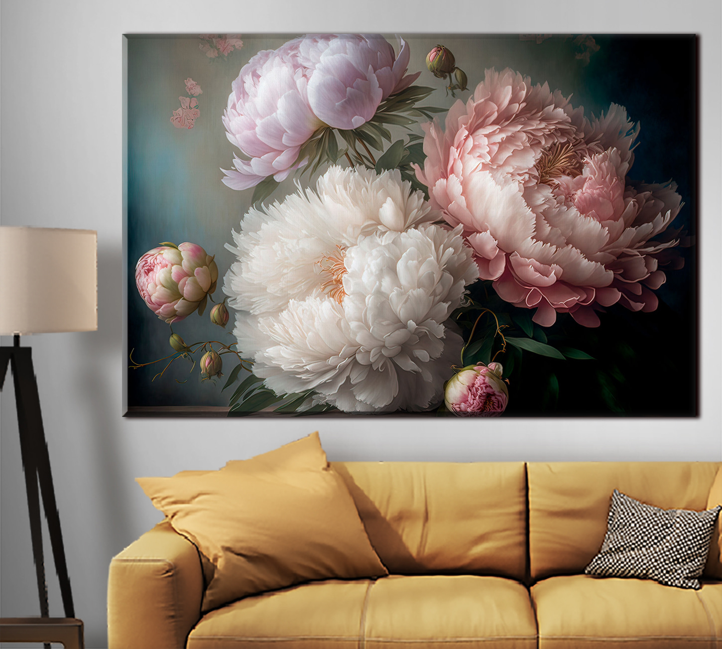 Transformez n’importe quel espace en une retraite sereine grâce à cette superbe impression sur toile représentant d’élégantes pivoines en douce floraison. Ces fleurs, comme l’ami qui apporte toujours le soleil, infusent chaleur et couleur, créant une atmosphère accueillante. Imaginez que vous sirotiez un thé pendant que cette magnifique œuvre d’art orne doucement votre mur, encourageant les rêveries et les chuchotements du printemps. Chaque pétale semble raconter une histoire, tirant sur la corde sensible. Parfaite pour égayer un salon ou ajouter une touche d’élégance à une chambre à coucher, cette œuvre vous fera ressentir, ainsi qu’à vos invités, toutes les bonnes vibrations.
