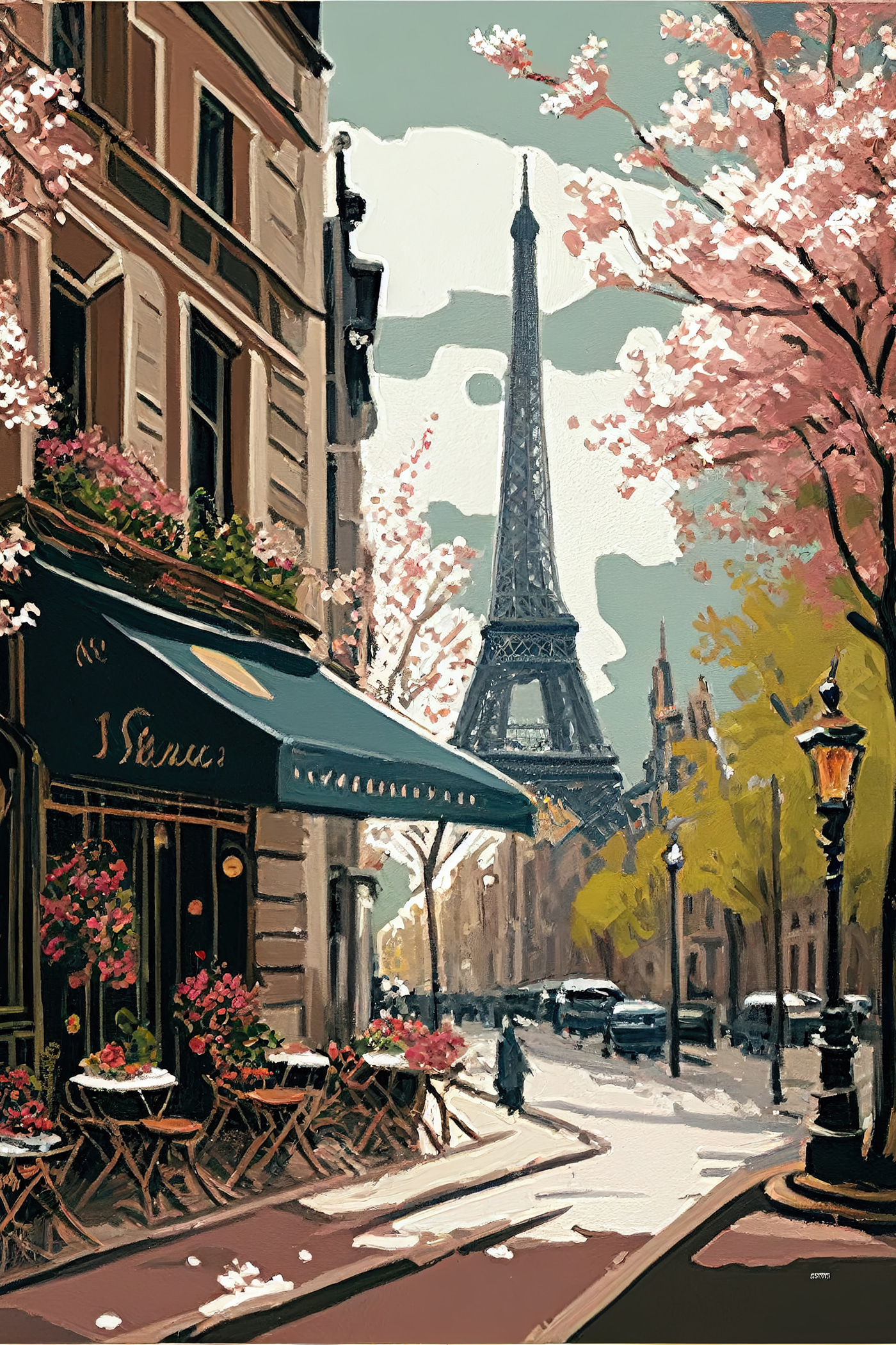 Transportez-vous dans un café de rue de rêve avec cette charmante impression sur toile. Imaginez la chaleur d’un café fraîchement préparé et le doux murmure des conversations, tandis que la tour emblématique se dresse à l’arrière-plan. Les fleurs pastel et les tables pittoresques invitent à des moments de rire et à des discussions décontractées entre amis, ou peut-être simplement à un moment de tranquillité pour vous-même. Chaque coup d’œil à cette œuvre d’art peut vous transporter dans une journée ensoleillée passée à flâner dans la ville, en ressentant cette indéniable effervescence. Parfait pour n’importe quel mur, c’est comme si vous aviez un petit morceau d’une escapade parisienne à la maison !