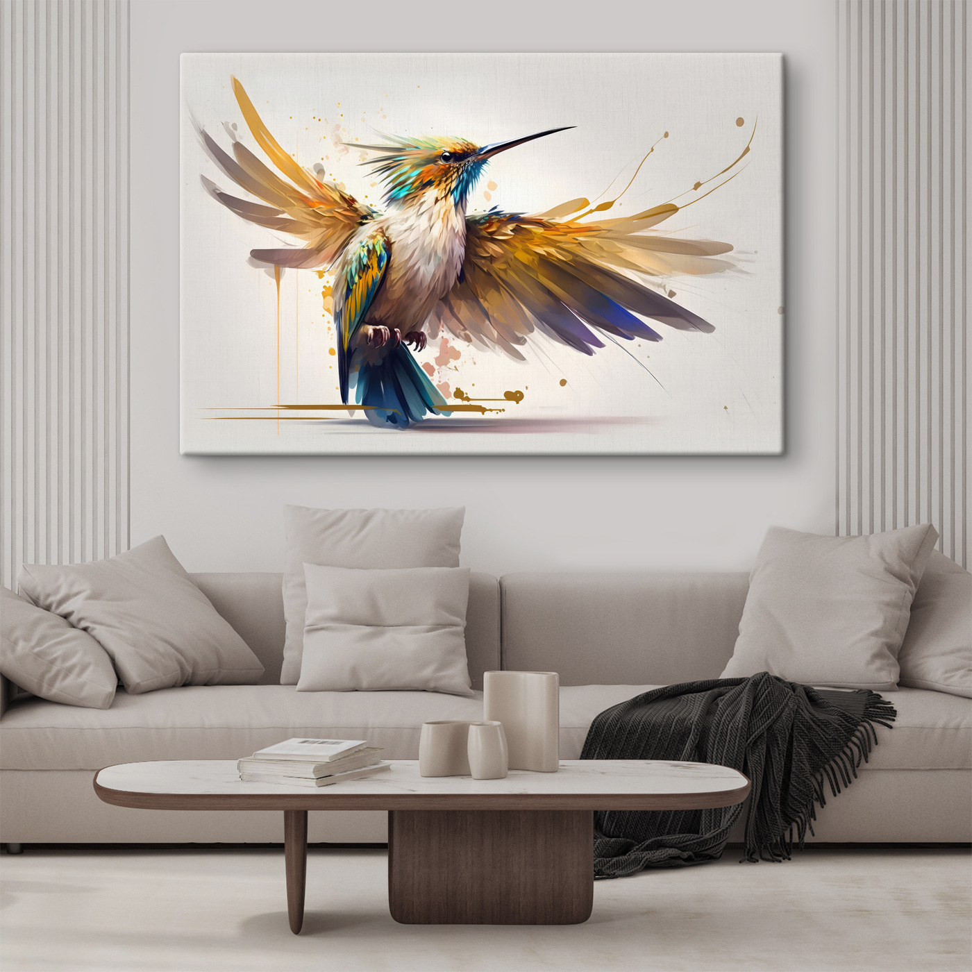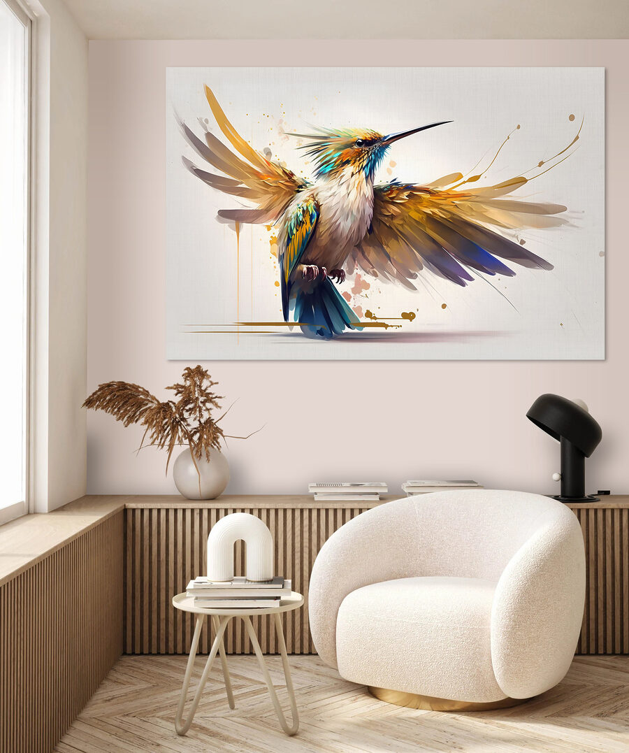 Imaginez que vous entrez dans votre salon et que vous vous retrouvez avec une explosion de couleurs et de vie sur votre mur. Cette impression sur toile d’un oiseau aux ailes déployées, c’est comme si vous aviez une part des tropiques chez vous. Ces couleurs sont si vives qu’on a l’impression que l’arc-en-ciel est emprisonné dans les plumes. Et le détail – vous pouvez presque sentir le doux battement d’ailes rien qu’en le regardant. C’est ludique et énergique, mais il y a aussi quelque chose d’apaisant. Un choix parfait pour un coin confortable où vous siroterez votre café, en contemplant cette beauté et en rêvant d’aventures. Idéal pour tous ceux qui aiment avoir une touche d’art de la nature dans leur nid.