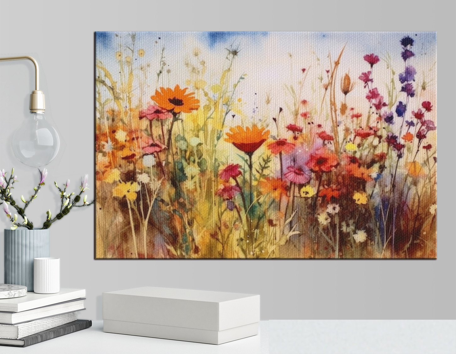 Imaginez que vous pénétrez dans un champ de fleurs sauvages chaque fois que vous entrez dans votre chambre. C’est exactement ce que fait ce “Tableaux Vibrant Wildflowers in Watercolor Painting” (imprimé sur toile – fleurs sauvages vibrantes dans une peinture à l’eau) ! C’est comme une explosion de couleurs printanières tout au long de l’année. La technique de l’aquarelle lui confère une atmosphère de rêve, presque magique, comme si vous regardiez à travers une fenêtre dans une prairie ensoleillée. Placez ce tableau dans votre salon ou votre chambre et observez comment il illumine instantanément l’espace. Les couleurs sont si vives qu’on a l’impression de sentir les fleurs et la brise chaude. Parfait pour tous ceux qui aiment la nature, les fleurs et une touche de fantaisie dans leur décoration. De plus, il s’inscrit parfaitement dans les thèmes de l’art sur toile des fleurs, de l’art sur toile populaire et de l’art sur toile de l’aquarelle. C’est un petit morceau de joie dont vous aimeriez vous réveiller tous les matins.