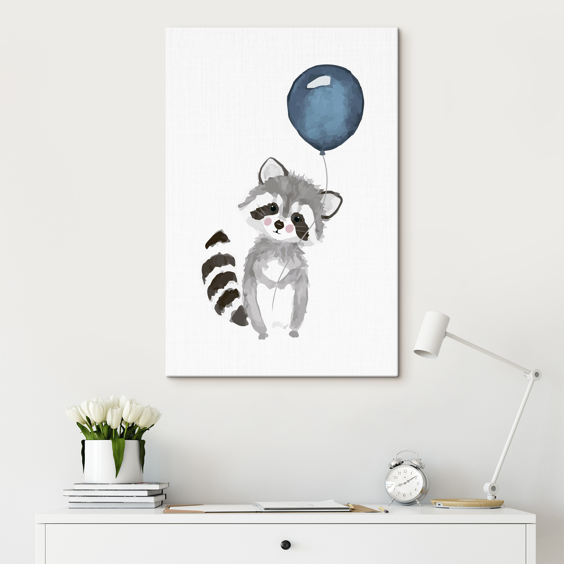 Vous cherchez quelque chose pour égayer la chambre de votre enfant ? Jetez un coup d’œil à cette adorable impression sur toile d’un raton laveur tenant un ballon. Sérieusement, à quel point ce petit bonhomme est mignon ? C’est comme s’il s’était échappé d’une fête d’anniversaire et qu’il était maintenant prêt à vivre sur votre mur ! Parfaite pour les chambres d’enfants ou les salles de jeux, cette œuvre ne manquera pas de faire sourire. Imaginez la joie que votre enfant ressentira en se réveillant chaque jour devant ce petit visage adorable. Il est fantaisiste, amusant et ajoute une touche de couleur à l’espace. De plus, c’est un excellent moyen d’engager la conversation. Qui n’aurait pas envie de parler d’un raton laveur avec un ballon ?