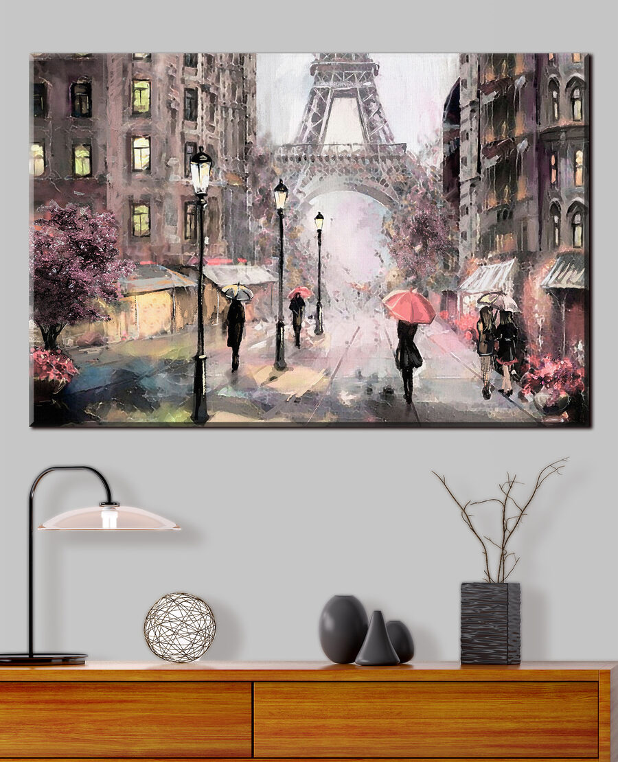 Imaginez que vous pénétrez dans une charmante rue parisienne, avec des lumières scintillantes et l’emblématique Tour Eiffel apparaissant à travers la brume. Cette impression sur toile “Scène de rue à Paris, jour de pluie” apporte cette ambiance de rêve et de romantisme directement dans votre espace. Parfaite pour les amateurs de paysages urbains, elle capture des personnes se promenant sous des parapluies, ajoutant une touche d’intrigue et de confort à n’importe quelle pièce. Vous pouvez presque entendre le doux battement de la pluie et sentir la fraîcheur de la brise parisienne ! Chaleureux, accueillant et un brin nostalgique, c’est une belle façon de se transporter dans la ville de l’amour, que l’on y soit allé ou que l’on en rêve.