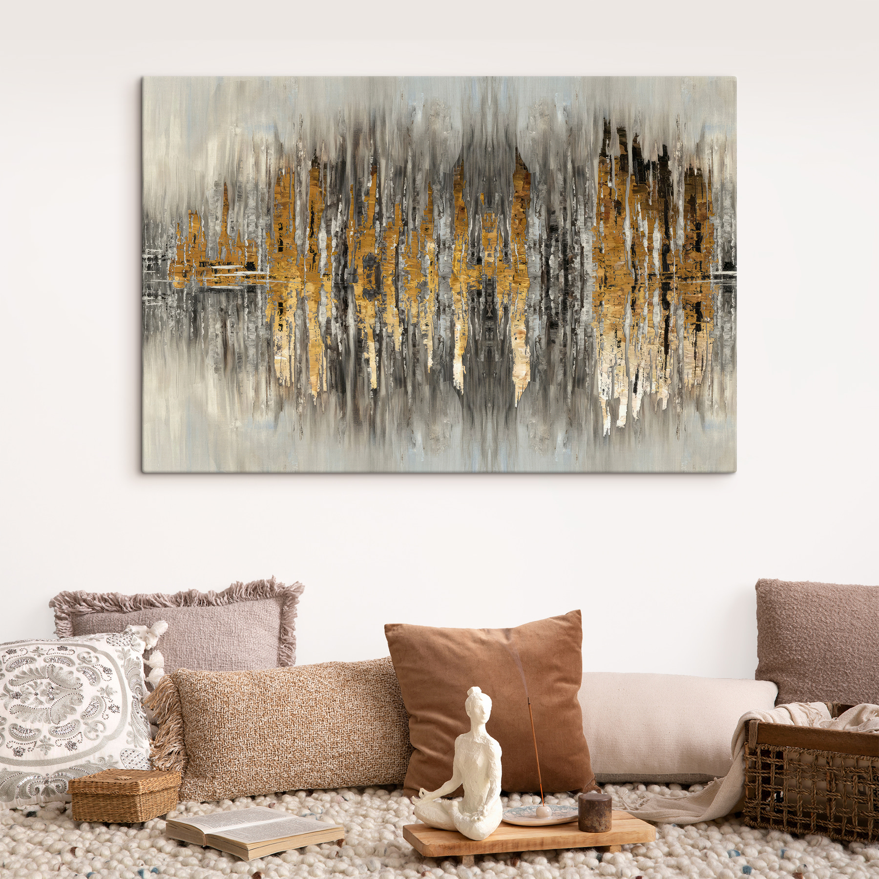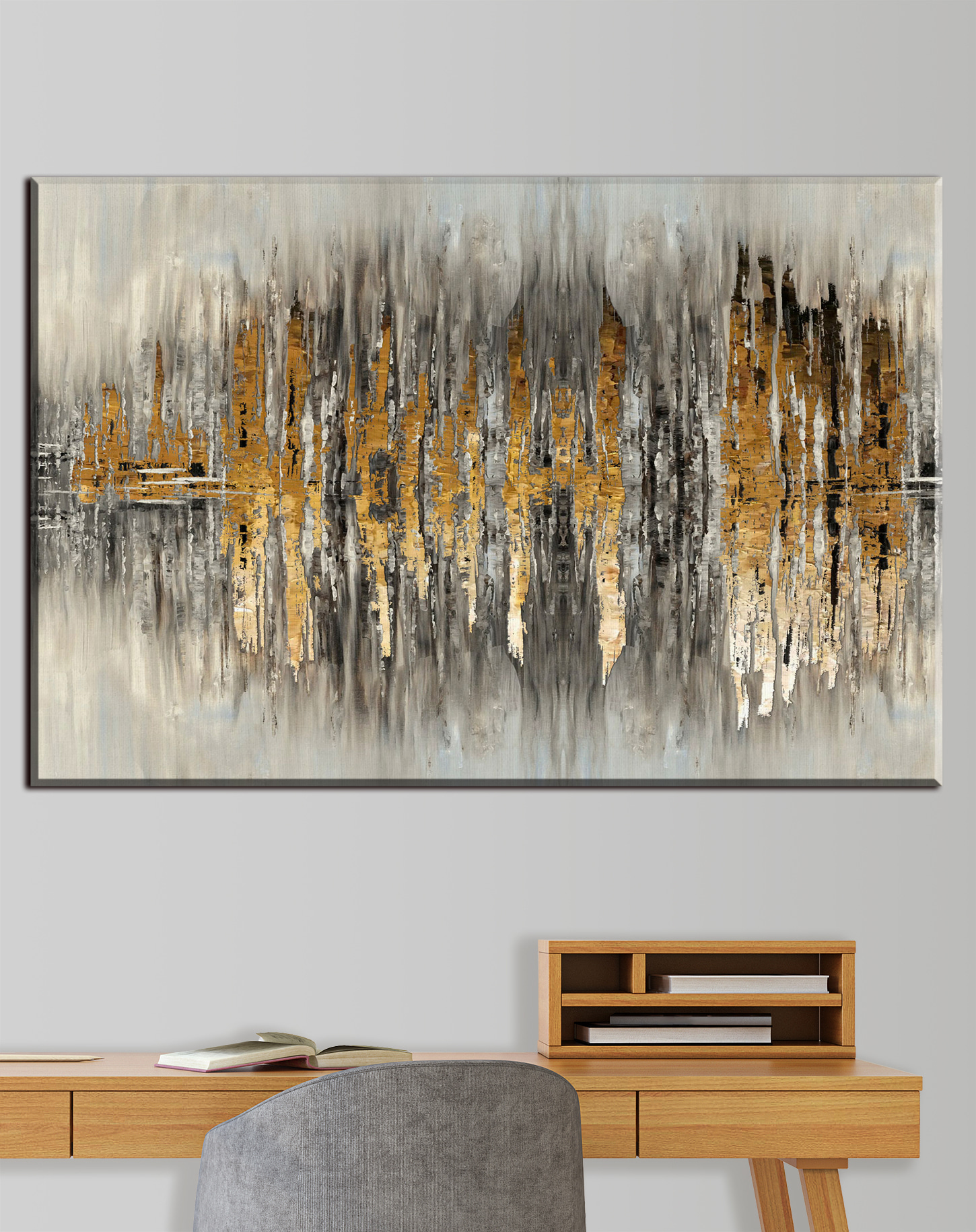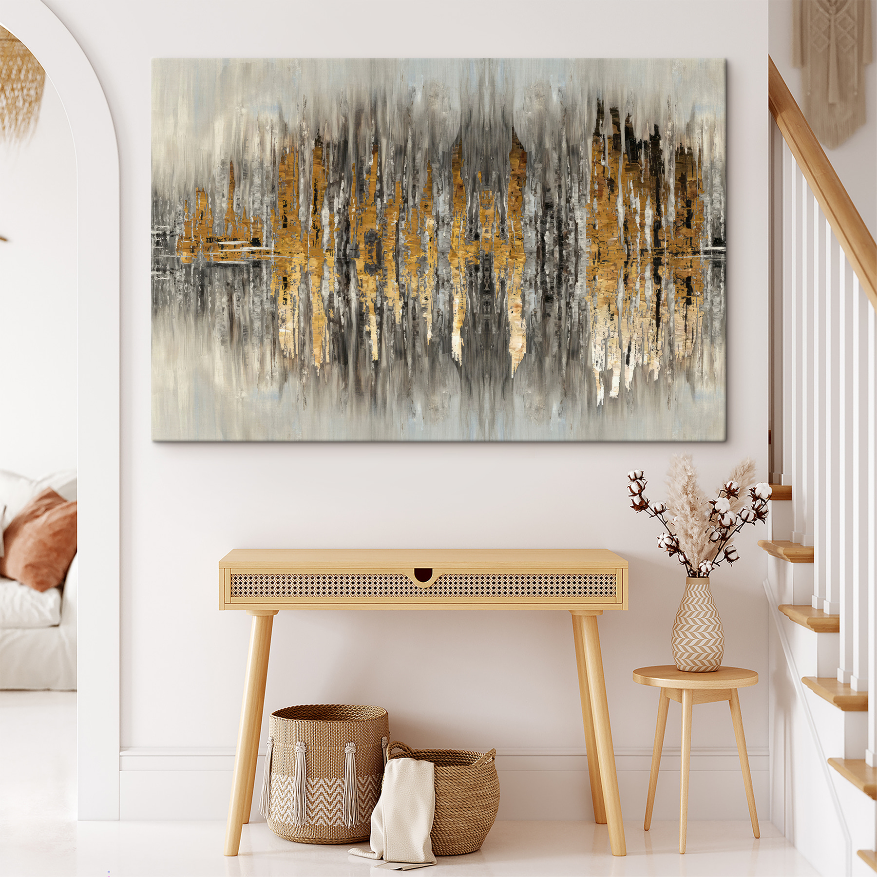 Imaginez que vous pénétrez dans un paysage urbain chic qui renverse la vue habituelle. Cette impression abstraite capture les gratte-ciel et les reflets d’une manière qui invite tout le monde à y regarder à deux fois. C’est comme si votre mur était devenu beaucoup plus cool. Les tons sourds se marient à merveille avec les touches de couleur audacieuses, créant une atmosphère à la fois calme et vibrante. Parfait pour ce mur vide qui ne demande qu’à avoir de la personnalité. Vos amis pourraient même s’arrêter et vous regarder, se demandant où vous l’avez trouvé. Un petit morceau de magie urbaine dans votre maison – qui n’aimerait pas cela ?