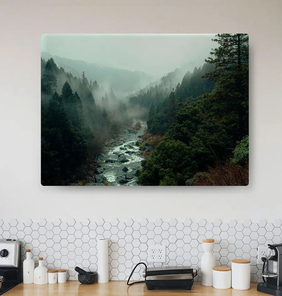 N’est-ce pas tout simplement magnifique ? L’impression sur toile “Rivière courant à travers une forêt” est exactement ce que vous voulez quand vous avez besoin d’une tranche de tranquillité dans votre espace. Imaginez que vous vous reposiez les yeux sur ce tableau tous les jours : une rivière sinueuse se faufilant entre des arbres luxuriants et embrumés – c’est comme si vous vous laissiez emporter dans une randonnée sereine, les bottes boueuses en moins !