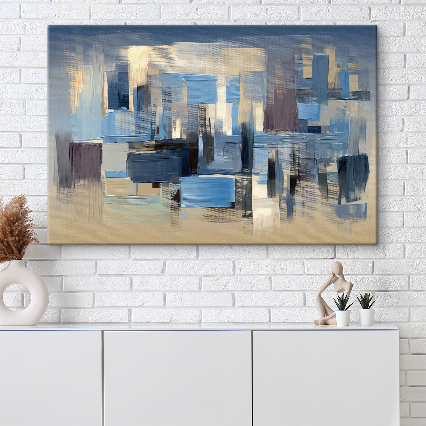 Jetez un coup d’œil à cette délicieuse impression sur toile, “Paysage urbain abstrait dans des tons sourds”. Il s’agit d’un fabuleux mélange de bleus froids et de beiges doux, un peu comme une rêverie urbaine. Vous savez, comme lorsque vous regardez par la fenêtre et que les bâtiments se confondent en une belle scène calme. Cette pièce s’intègre parfaitement dans n’importe quelle pièce où vous souhaitez un peu de tranquillité – peut-être votre salon ou même un coin lecture confortable. Ces tons sourds ont quelque chose de tellement apaisant qu’ils évoquent presque la relaxation. Ils sont parfaits pour ajouter une touche d’art subtile sans être trop visible. Imaginez que vous rentriez chez vous après une longue journée et que vous vous perdiez dans ces coups de pinceau rêveurs – c’est comme une mini-vacance sur votre mur ! Vous aimez la créativité ? Moi aussi.