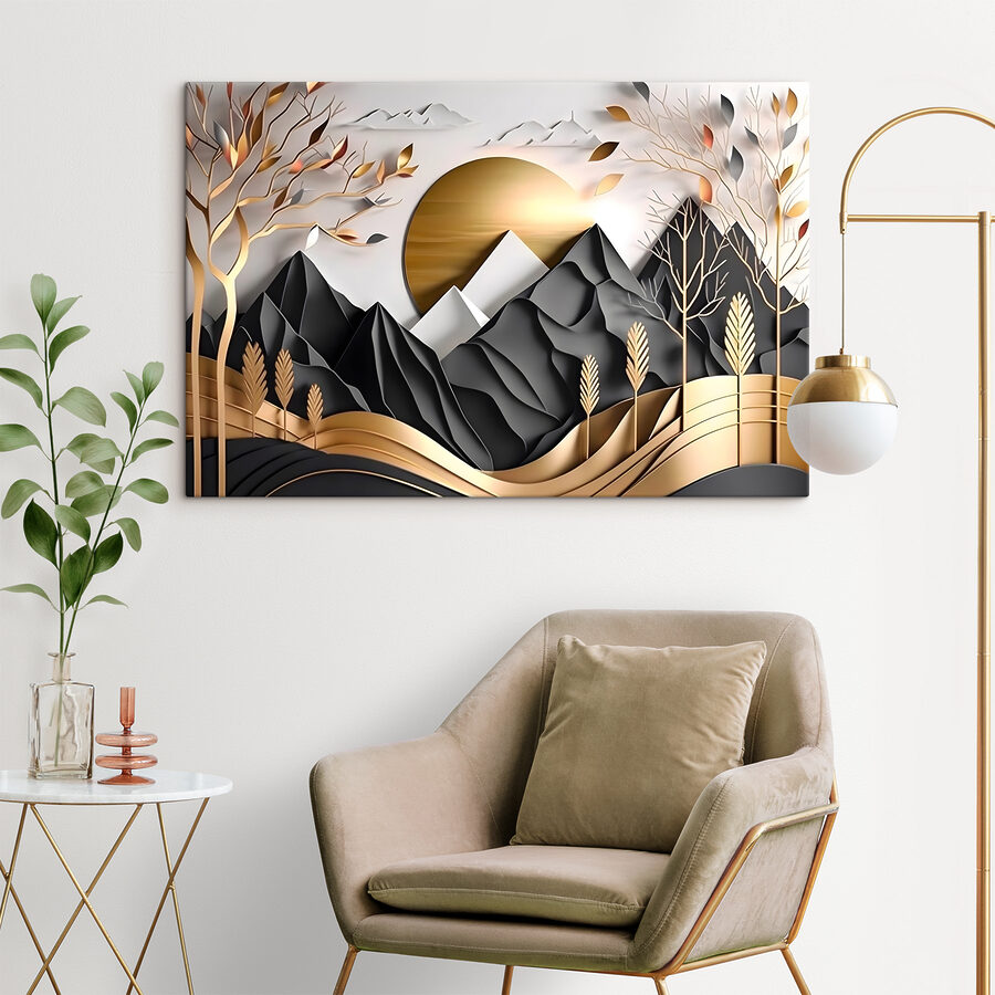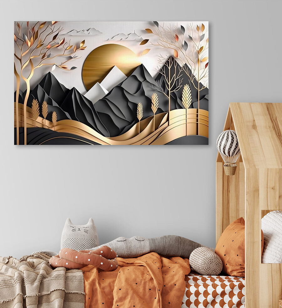 Transformez un mur vierge en une échappée sereine grâce à cette superbe impression sur toile ! Imaginez que vous rentriez chez vous dans un paysage de rêve composé de montagnes et d’arbres, comme une douce étreinte de la nature. Les tons chauds et les formes élégantes sont comme un doux murmure de la forêt, invitant au calme et à la créativité. Imaginez que vous sirotiez votre café du matin en contemplant cette œuvre d’art et que vous vous sentiez un peu plus proche de la nature. Que ce soit dans le salon ou dans le coin lecture, cette pièce ajoute une touche de tranquillité. Plus qu’un simple décor, c’est une expérience à vivre !