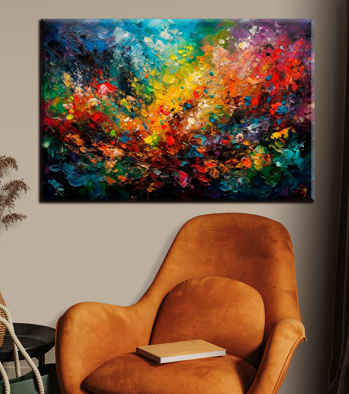 Imaginez que vous entrez dans votre pièce et que vous êtes immédiatement frappé par une explosion de couleurs qui font chanter votre cœur – c’est ce que représente cette impression sur toile “Vibrant Abstract Brush Strokes Explosion” (Explosion de coups de pinceau abstraits). C’est comme si quelqu’un avait pris toutes les meilleures couleurs et les avait mélangées dans une danse joyeuse et chaotique. Parfait pour donner de l’énergie à votre espace.