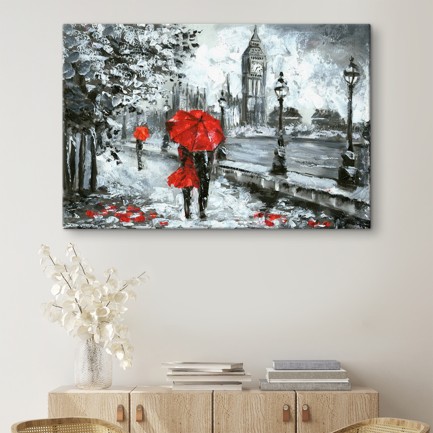 Imaginez que vous vous promeniez dans une ville brumeuse où, même par les jours les plus maussades, ces touches de rouge peuvent transformer l’ambiance. Notre “Impression sur toile Peinture d’un parapluie rouge” n’est pas un simple paysage urbain. Il est vivant ! Un parapluie rouge vif se détache audacieusement de l’arrière-plan en niveaux de gris, créant une ambiance à la fois romantique et mystérieuse. C’est comme si la ville vous chuchotait des secrets. Parfaite pour un coin douillet ou un salon chic, cette pièce vous rappelle qu’une touche de couleur peut transformer n’importe quelle journée grise en une aventure de rêve. Pensez aux promenades pluvieuses, au doux clapotis des gouttes de pluie – le genre d’ambiance qui vous donne envie de vous blottir dans un bon livre ou de partager un moment de calme avec quelqu’un de spécial. C’est la magie de la ville sur la toile !