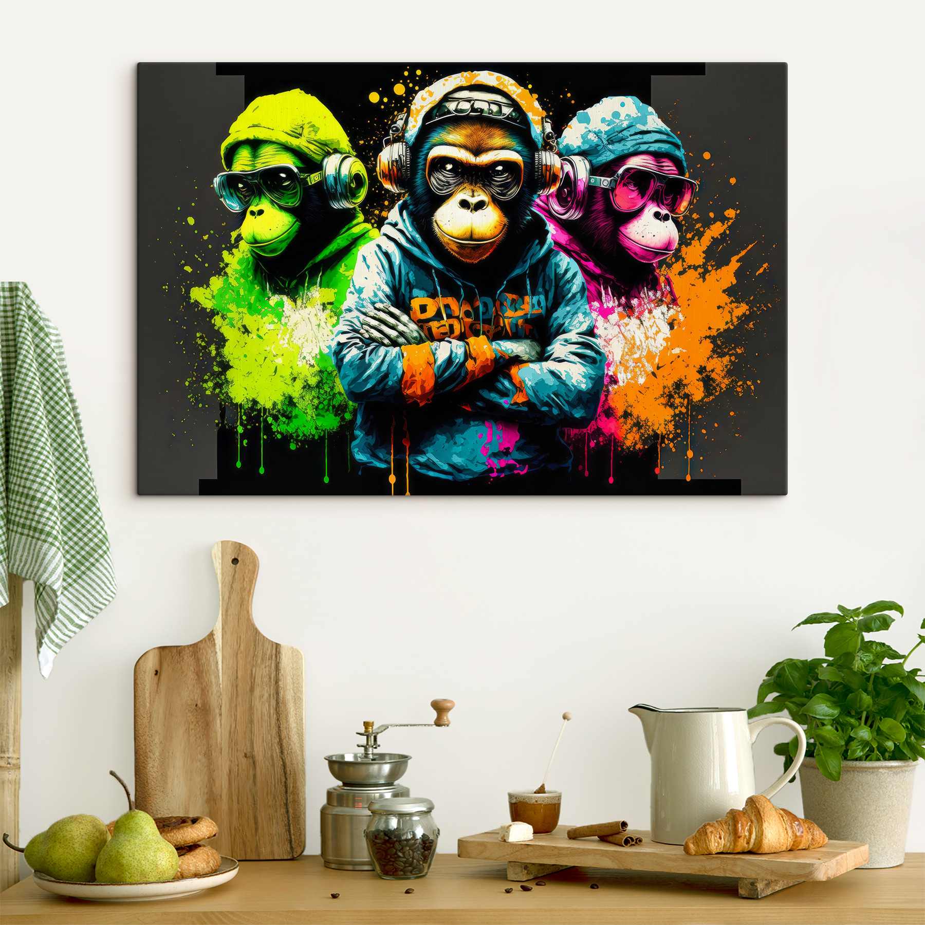 Découvrez cette impression sur toile radicale représentant un trio de singes funky portant des écouteurs et des sweats à capuche ! Parfaite pour tous ceux qui aiment les animaux avec un côté cool, cette œuvre d’art mélange des couleurs vibrantes avec une touche de fantaisie. C’est comme si ces singes sortaient tout droit d’une fresque de street art pour entrer dans votre salon. Imaginez cette œuvre accrochée à votre mur, ajoutant une touche de personnalité et un grand sourire à tous ceux qui la verront. Qu’il s’agisse d’un bureau, d’une chambre d’étudiant ou de ce pan de mur nu que vous fixez depuis des semaines, il ne manquera pas d’alimenter les conversations. Croyez-nous, c’est aussi amusant que ça en a l’air !