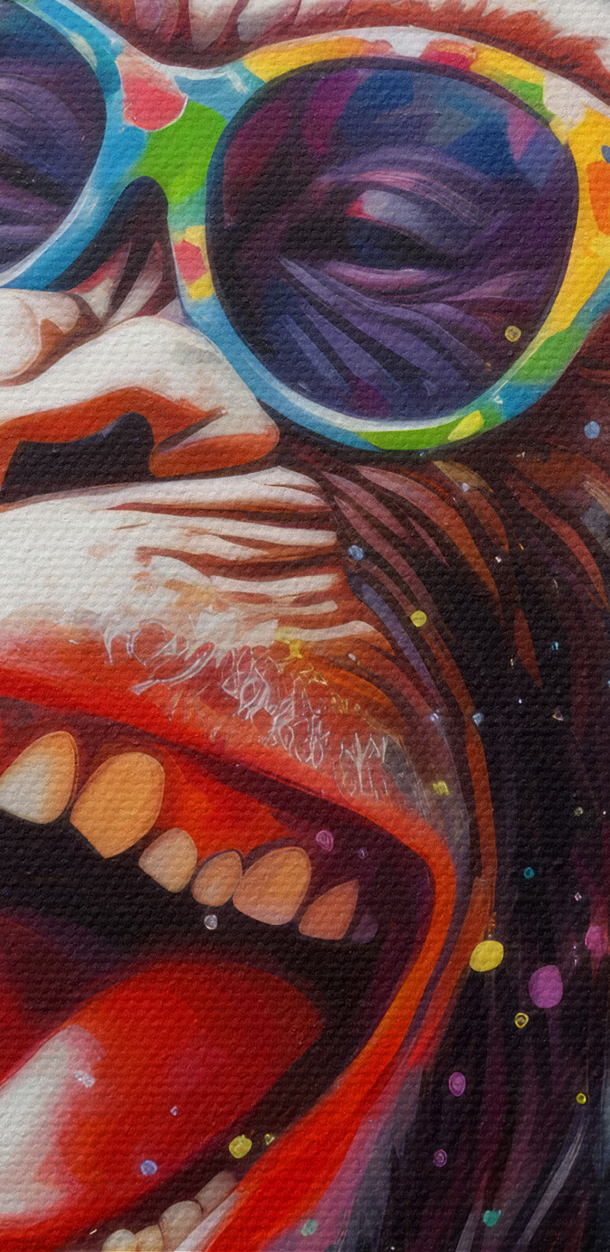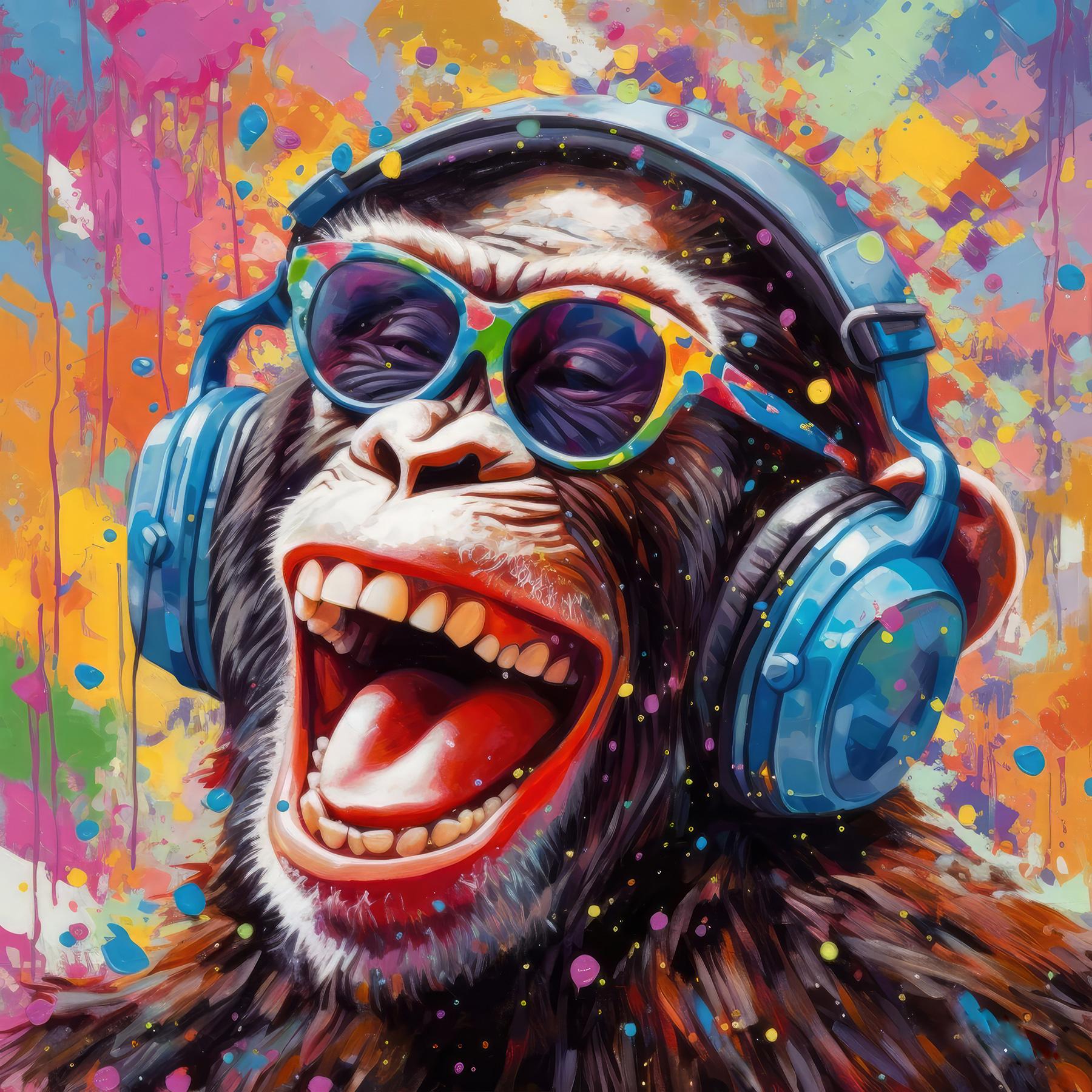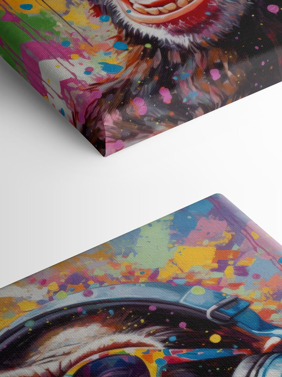 Voici quelque chose que l’on ne voit pas tous les jours : un singe portant une paire de lunettes de soleil et des écouteurs ! Cette impression sur toile est comme un éclat de rire sur vos murs. Imaginez que vous rentriez chez vous tous les jours, c’est un pur bonheur, n’est-ce pas ? Les éclaboussures d’aquarelle ajoutent une touche ludique, comme si le singe s’amusait comme un fou dans un festival de musique. On l’entend presque dire : “Pourquoi tant de sérieux ?”.