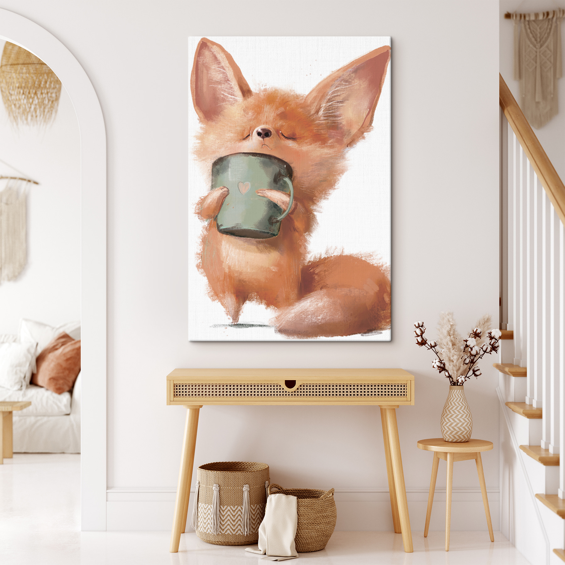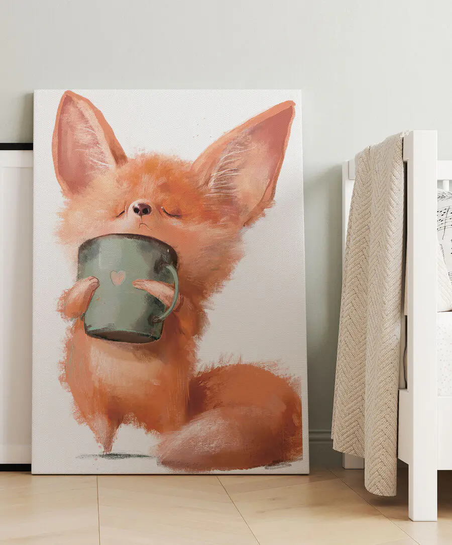 Entrez dans un monde de charme avec cette délicieuse impression sur toile représentant un adorable renard fennec savourant une boisson chaude. Imaginez ce petit bonhomme, les yeux fermés, heureux à souhait, parfait pour ajouter une touche douillette à n’importe quelle pièce. C’est le genre d’œuvre qui suscite la joie et le sourire, que ce soit dans la salle de jeux d’un enfant ou dans un coin douillet de votre espace de vie. Imaginez des après-midi paresseux passés avec une tasse de thé, votre livre préféré et ce petit renard qui veille sur vous. C’est comme si vous aviez un joyeux compagnon qui vous réchauffe le cœur et illumine vos murs avec fantaisie. Illuminez votre espace avec cet art charmant qui ne manquera pas de créer une conversation ou deux !
