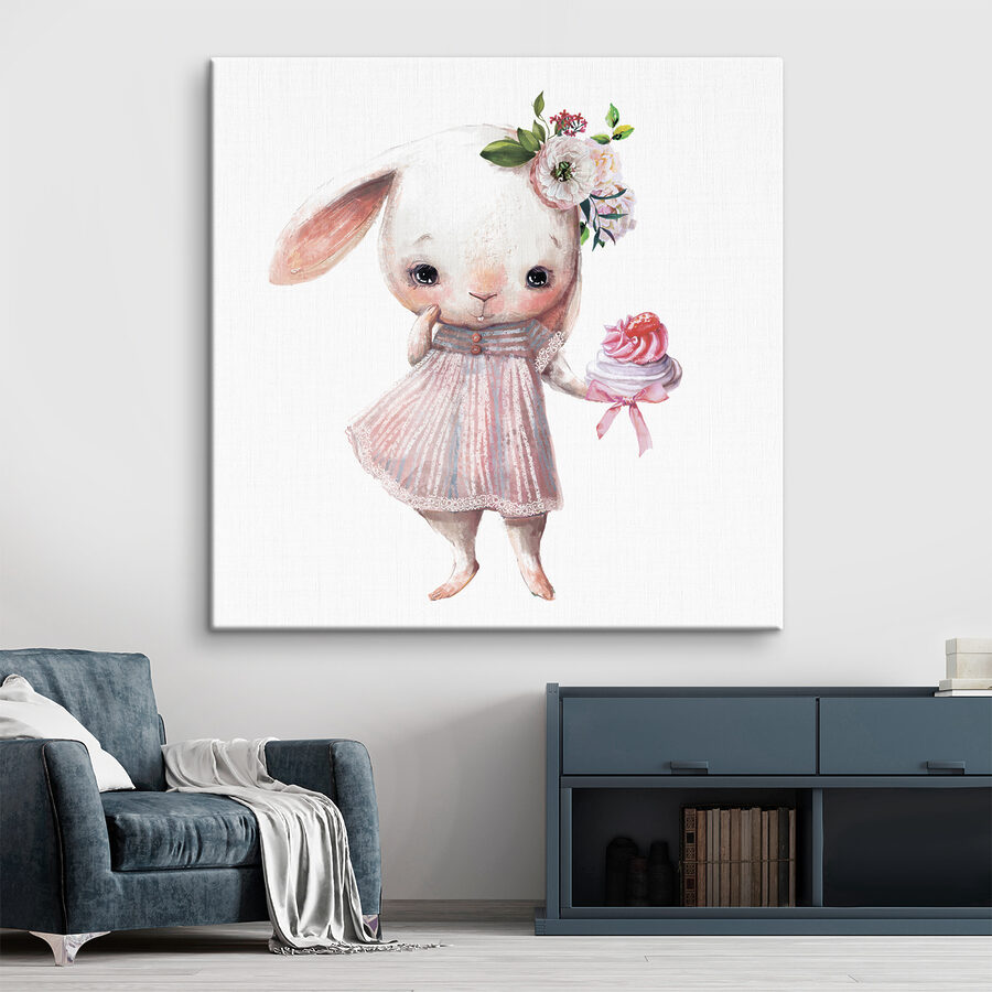 Imaginez que vous entriez dans une pièce et que vous soyez accueilli par cet adorable lapin tenant une friandise ! “Le lapin floral avec une friandise est l’ajout le plus mignon à n’importe quel espace, surtout si vous aimez le charme et la magie. Cette impression sur toile vous fera sourire. Avec ses couleurs douces et la petite expression timide du lapin, c’est comme un câlin chaleureux sur votre mur.