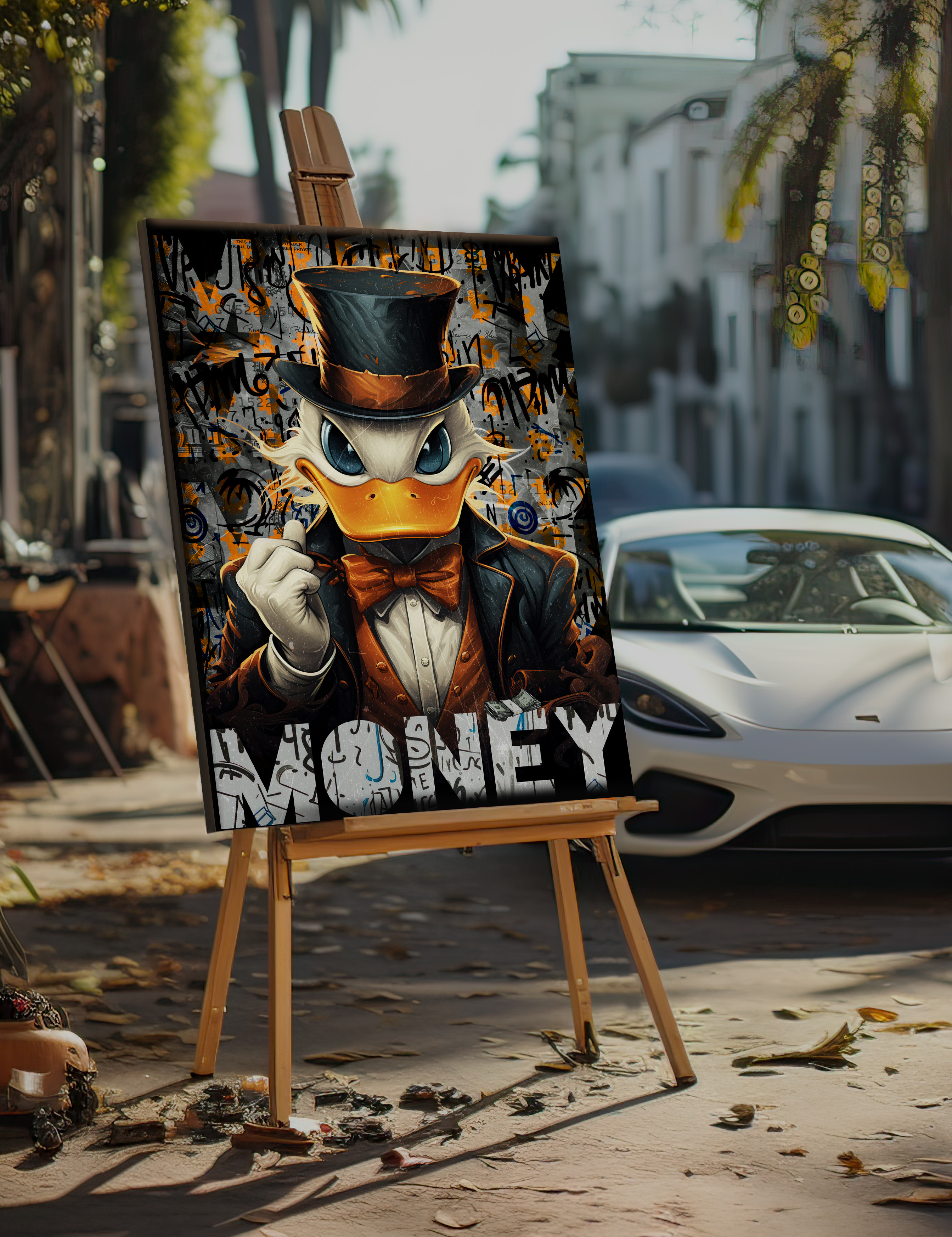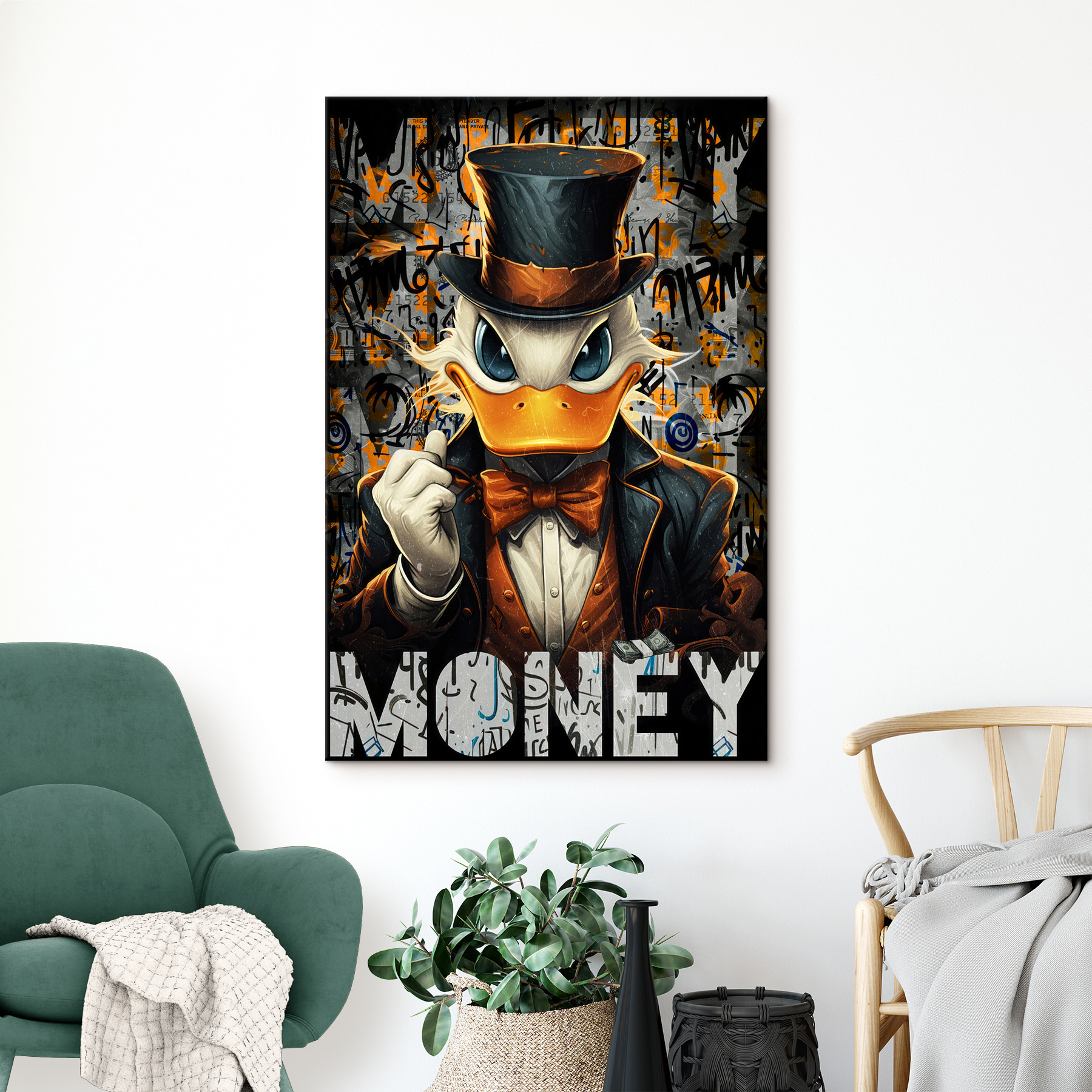 Avez-vous déjà souhaité qu’une œuvre d’art puisse parler ? Cette toile vibrante, qui met en scène un canard de dessin animé vêtu d’un chapeau haut de forme et d’un smoking de grande classe, crie pratiquement sa personnalité. C’est comme si vos murs venaient d’engager un coach en motivation, mais en beaucoup plus cool. Parfait pour les amoureux des animaux ou pour tous ceux qui ont besoin d’un coup de fouet dans leur espace. Pouvez-vous imaginer passer une mauvaise journée en regardant son regard confiant ? Vous ressentirez instantanément un regain d’énergie – et peut-être un soupçon de sérénité – à chaque fois que vous passerez devant lui. Croyez-moi, votre jeu de décoration vient de monter d’un cran.
