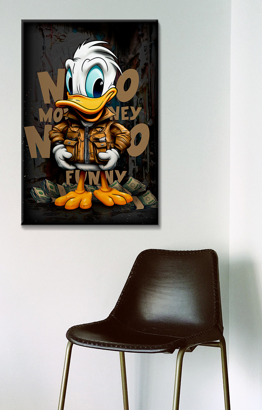 Préparez-vous à faire du chahut avec cette impression sur toile impertinente ! Imaginez : un canard de dessin animé, drapé dans une veste élégante, jonglant avec une pile d’argent. C’est audacieux, c’est excentrique et cela pourrait bien faire de votre salon le centre d’intérêt de tout le monde. Imaginez que vous y jetiez un coup d’œil tous les matins : vous vous sentirez immédiatement de meilleure humeur, n’est-ce pas ? Cette pièce n’est pas seulement de l’art ; c’est un clin d’œil au côté ludique de la vie, qui nous rappelle que parfois, la meilleure décoration ne se prend pas trop au sérieux. Parfait pour tous ceux qui aiment une touche d’amusement dans leur espace. Avouons-le, qui n’aurait pas besoin d’un peu plus de fantaisie ?