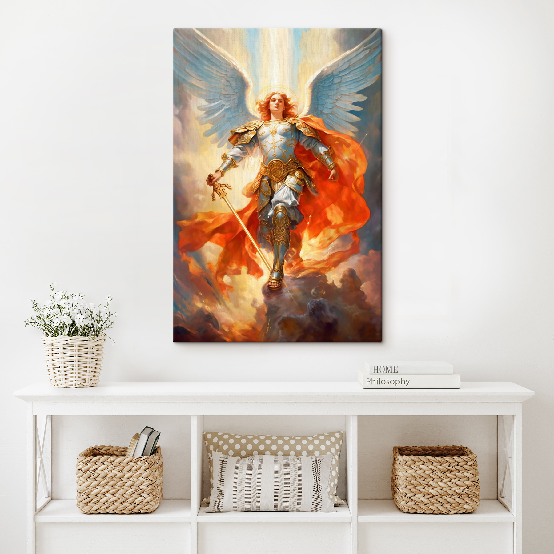 Imaginez que vous rentriez chez vous et que vous découvriez cette toile saisissante accrochée à votre mur – une peinture représentant une personne en armure avec des ailes et une épée. On dirait une scène tout droit sortie d’un roman fantastique épique ! Cette œuvre ajoute une touche de grandeur et d’admiration à n’importe quelle pièce, lui donnant l’impression d’être un espace sacré. Et ces couleurs ? Elles sont si vives et dynamiques qu’elles sautent presque hors de la toile pour raconter leur propre histoire.