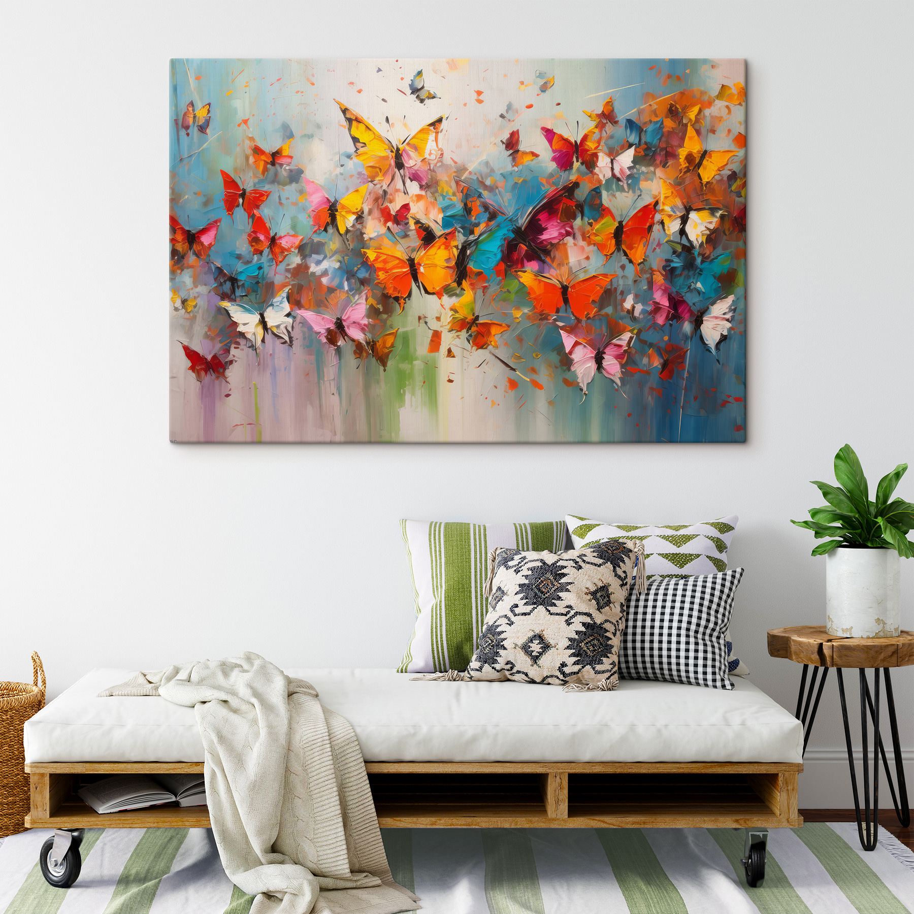 Transformez n’importe quel espace avec cette vibrante impression sur toile, “Groupe de papillons en vol”. C’est comme une explosion de joie sur votre mur, avec des papillons colorés qui volent dans une danse fantaisiste. Imaginez la lumière du soleil qui pénètre à l’intérieur, projetant des ombres ludiques pendant que ces beautés s’envolent, apportant la magie de l’extérieur à l’intérieur. Parfaite pour un coin lecture confortable ou un salon animé, cette œuvre ne réchauffe pas seulement les murs, elle suscite aussi des conversations. Les amis entreront, jetteront un coup d’œil et ressentiront immédiatement les ondes joyeuses. Qui ne voudrait pas d’une explosion de couleurs qui donne de la vie à sa maison ? Laissez cette impression vous chuchoter des histoires sur les merveilles de la nature – une véritable évasion à la maison.